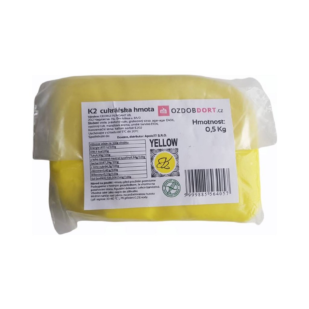 Potahovací hmota K2 na dorty 0,5kg žlutá - K2