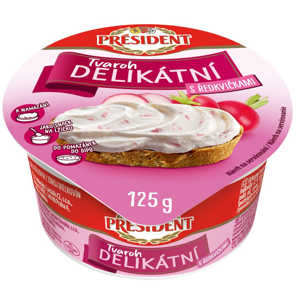 Nakupovat potraviny, drogerii a další potřeby pro domácnost online se vyplatí. Náš online supermarket Terunka.cz, toho má v kategorii: Chlazené produkty - mléčné mnohem více. Prohlédněte si celou naší nabídku a ušetřete svůj čas i peníze.PRÉSIDENT Tvaroh delikátní s ředkvičkami 125 g za skvělou cenu, máme skladem.