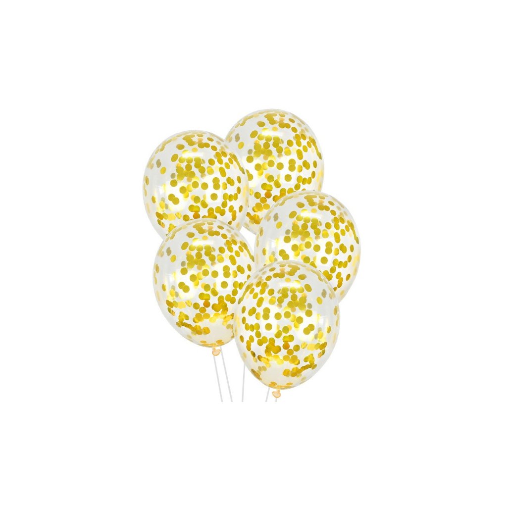 Průhledné balónky se zlatými konfetami 30 cm / 12" – 5 ks /BP