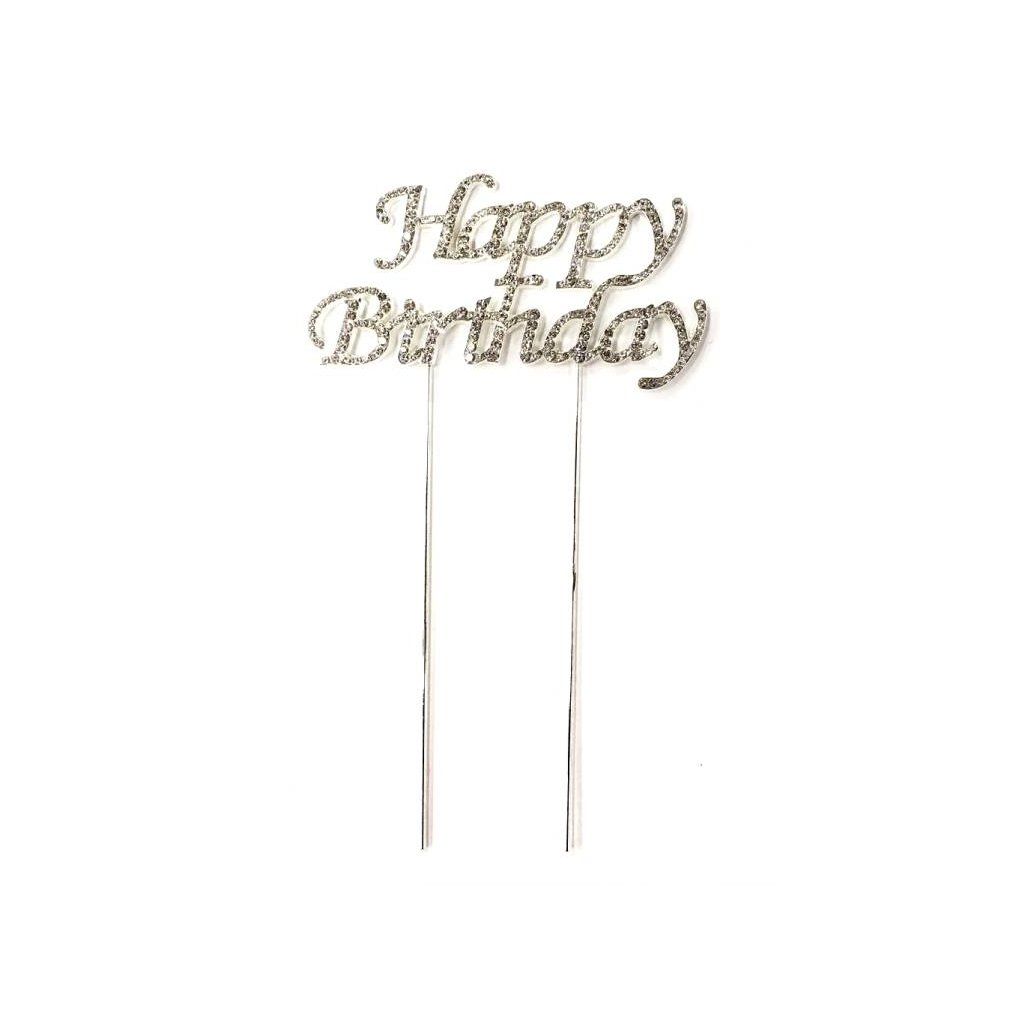 Rose Decor zápich do dortu Happy Birthday stříbrný 4,5 cm ▹