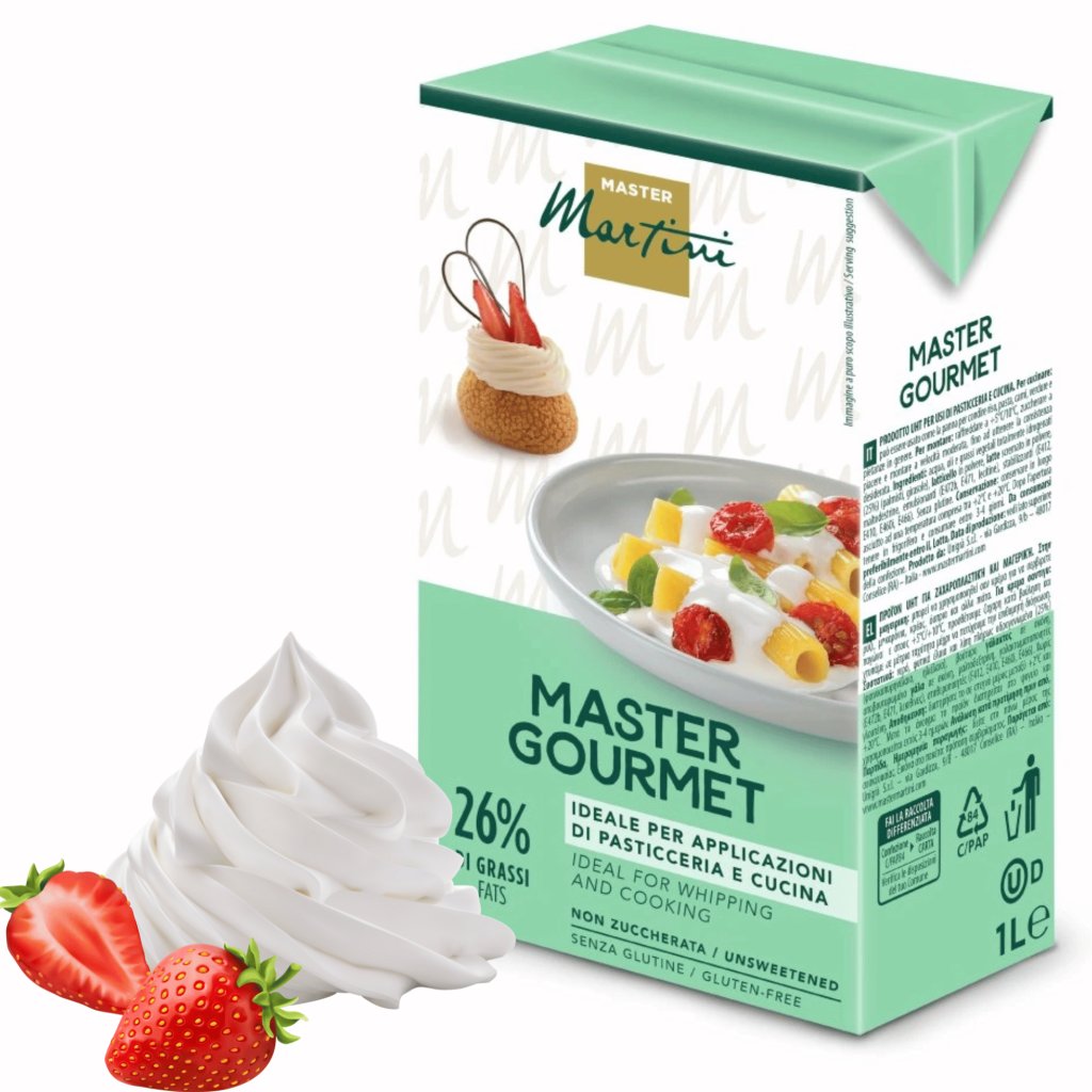 Určeno pouze pro další zpracování. Se smetanou Master Gourmet od Master Martini se vaše domácí pečení posune na úplně novou úroveň: - Vytvoříte stabilní a krásné dorty napoprvé, bez stresu a frustrace - Ušetříte čas i peníze - žádné další vyhozené suroviny a opakované pokusy - Získáte sebevědomí experimentovat s novými recepty a technikami - Stanete se hvězdou každé oslavy díky svým úžasným dortům - Potěšíte své blízké profesionálně vypadajícími a chutnajícími dezerty