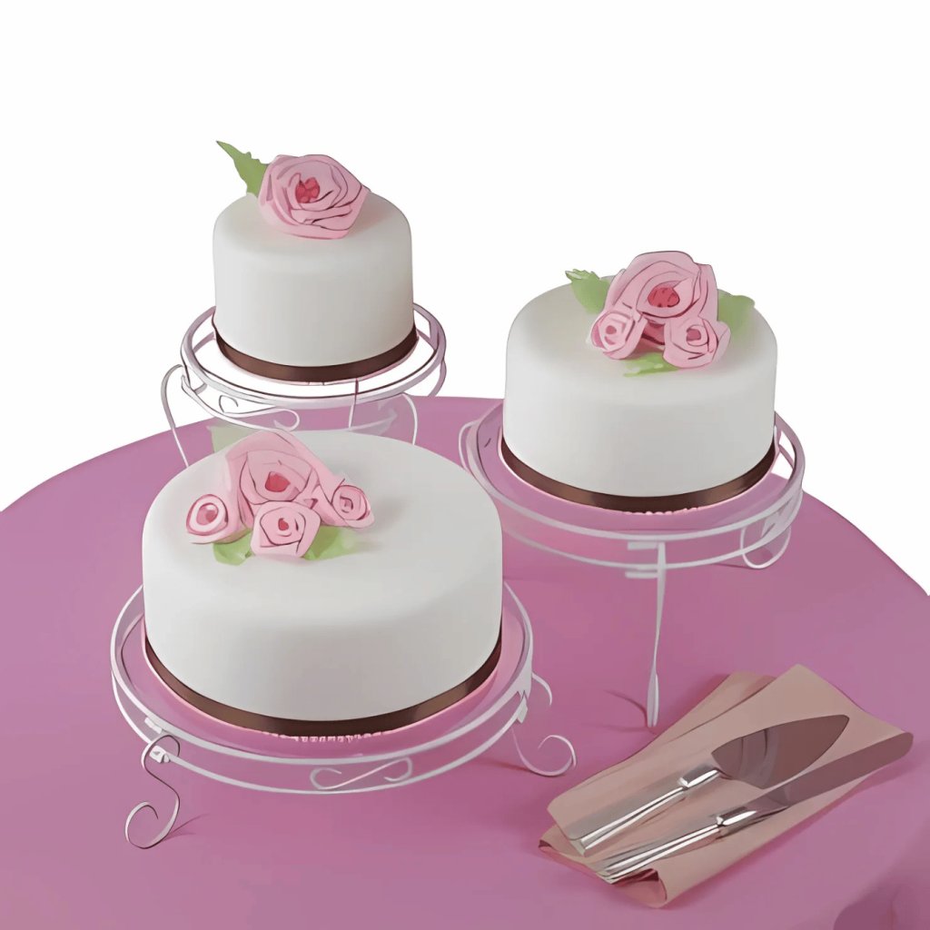 Elegantní a univerzální stojany na dort. Tři různé velikosti stojanu a odnímatelné rolovací nohy umožňují více kombinací vystavení dortu. Elegantní bílý povrch a průhledné desky doplní jakýkoli design dortu pro dokonalý kreativní výraz. Také krásný způsob, jak podávat cupcakes, předkrmy a jiná jídla pro párty, oslavy narozenin či na svatbu.