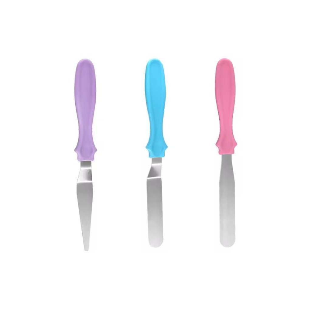 Stěrka pro cukráře, pekaře a kuchaře. Slouží k roztírání krémů apod. Délky čepele: 10,5 cm, 10,5 cm a 12 cm| Kategorie: | Cukrářské nože a palety |