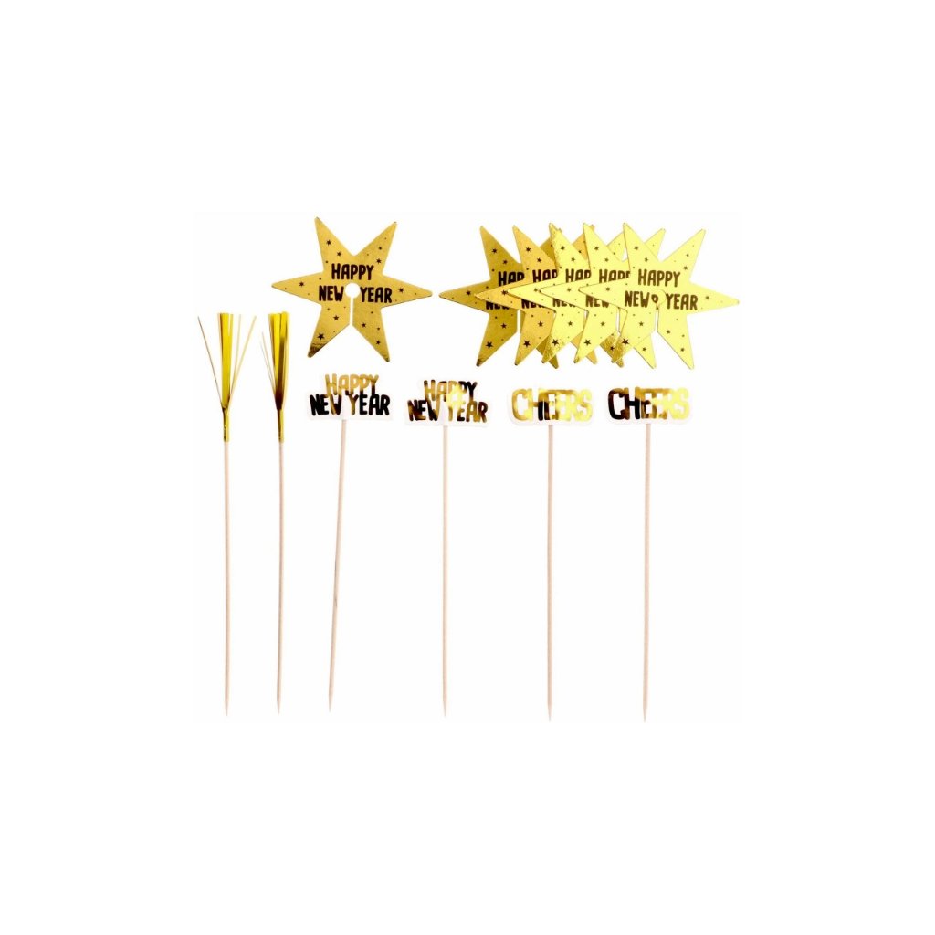 Sada na dekoraci sklenic - Happy New Year 12 ks, je skvělým doplňkem pro vaši Silvestrovskou párty nebo Novoroční oslavu. Dekorace na špejli jednoduše vložíte do nápoje, hvězdy s nápisem Happy New Year lze připevnit na okraj sklenice. připevníte na sklenice. Jednoduchý, rychlý a efektivní způsob, jak vytvořit poutavý dekor vašeho slavnostního stolu. Balení : 12 ksDoplňkové parametry