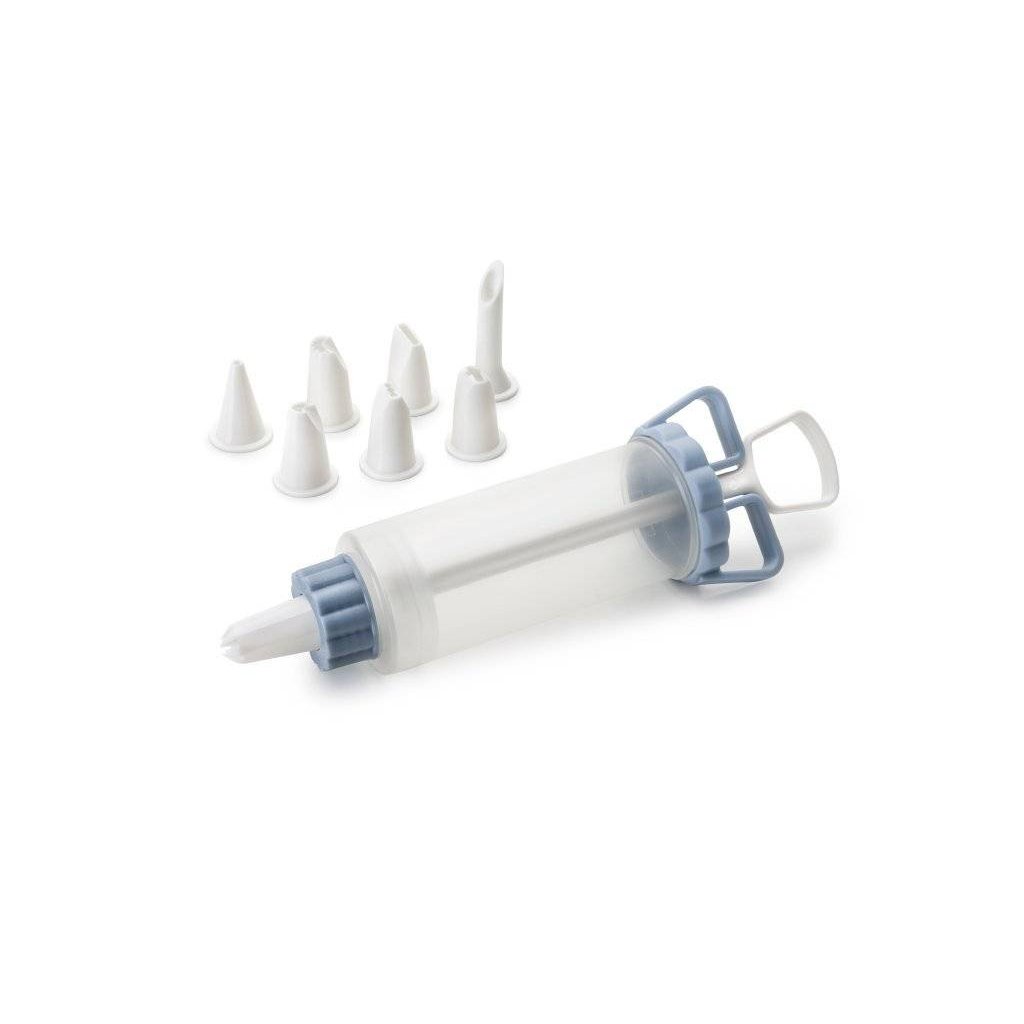 Zdobící pistole s osmi různými špičkami na vytváření dekorací z krému a polevy.Doplňkové parametry