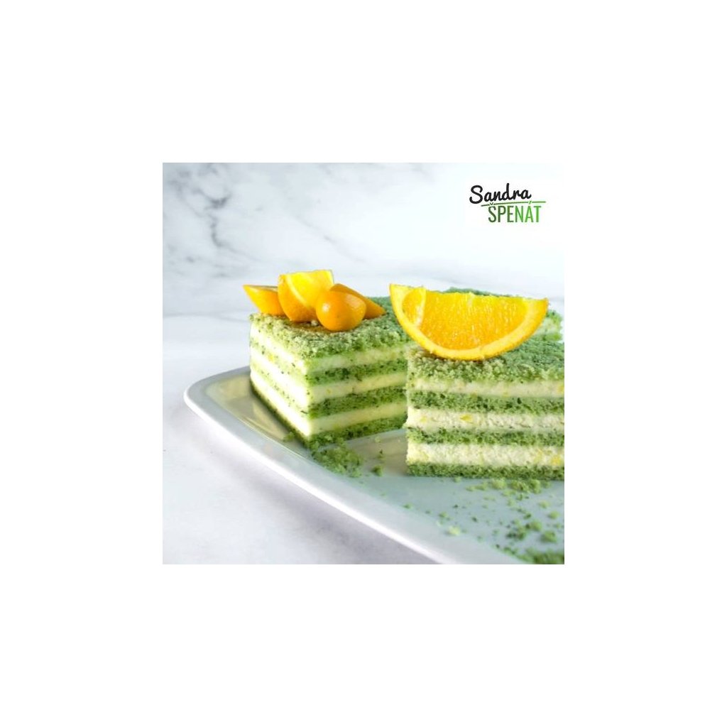 Kompletní směs pro výrobu speciálních litých hmot se špenátem (mechový dort). Lze ji použít k výrobě různých typů korpusů, roládových plátů i cupcakes. Složení: cukr, pšeničná mouka, sušené mléko, cizrnová mouka, kypřící látka (E450, E500), sušený špenát (1,4 %), kukuřičná mouka, sušený vaječný bílek, barvivo (E141, E101), sůl, stabilizátor (E415), glukóza, glukózový sirup Dávkování: 1000 g Sandra Špenát, 560 g vaječného tekutého obsahu, 320 g vody, 180 g oleje Nutriční hodnoty ve 100 g: energie 1596 kJ/382 kcal, tuky 2,3 g (z toho nasycené 1,1 g), sacharidy 81,1 g (z toho cukry 52,5 g), vláknina 2 g, bílkoviny 7,3 g, sůl 0,8 g| Kategorie: | Ostatní |