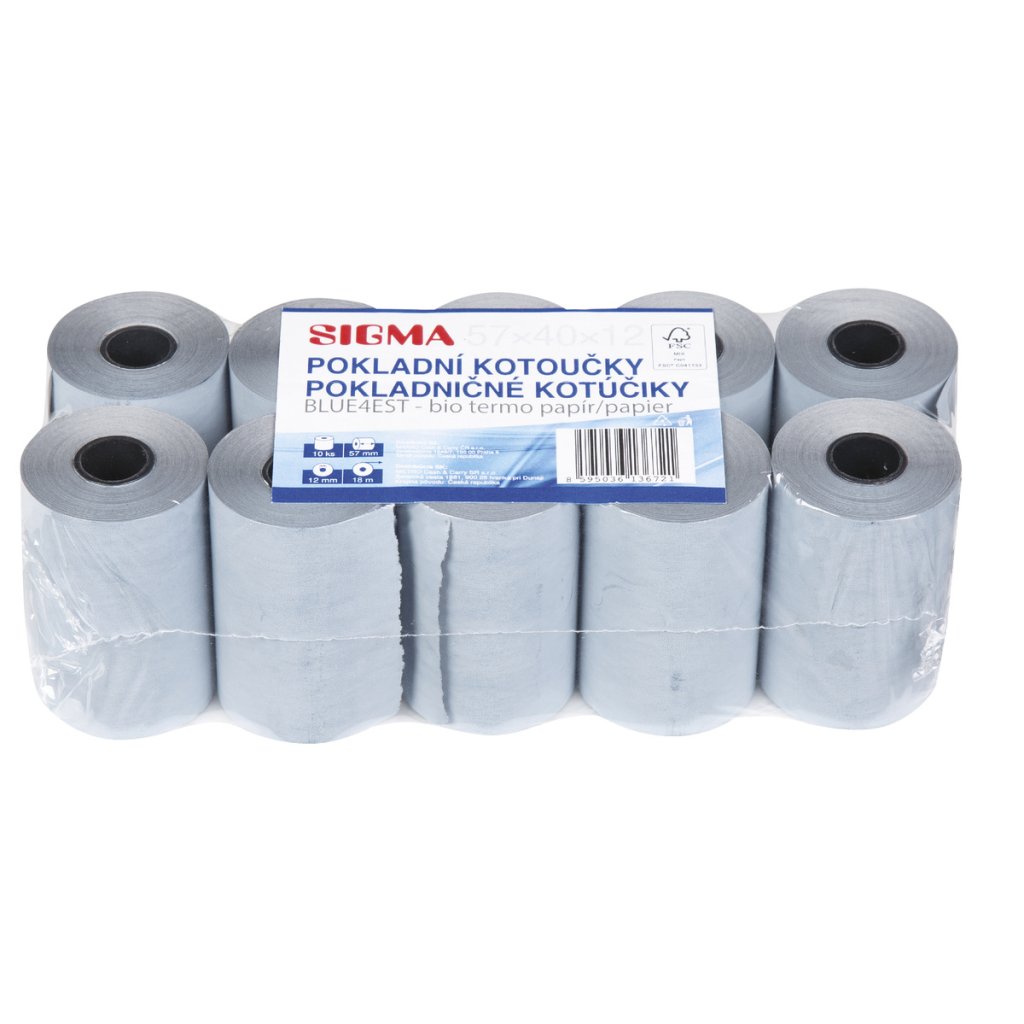 SIGMA Kotoučky pokladní termocitlivé Blue4est 57/40/12 10 ks