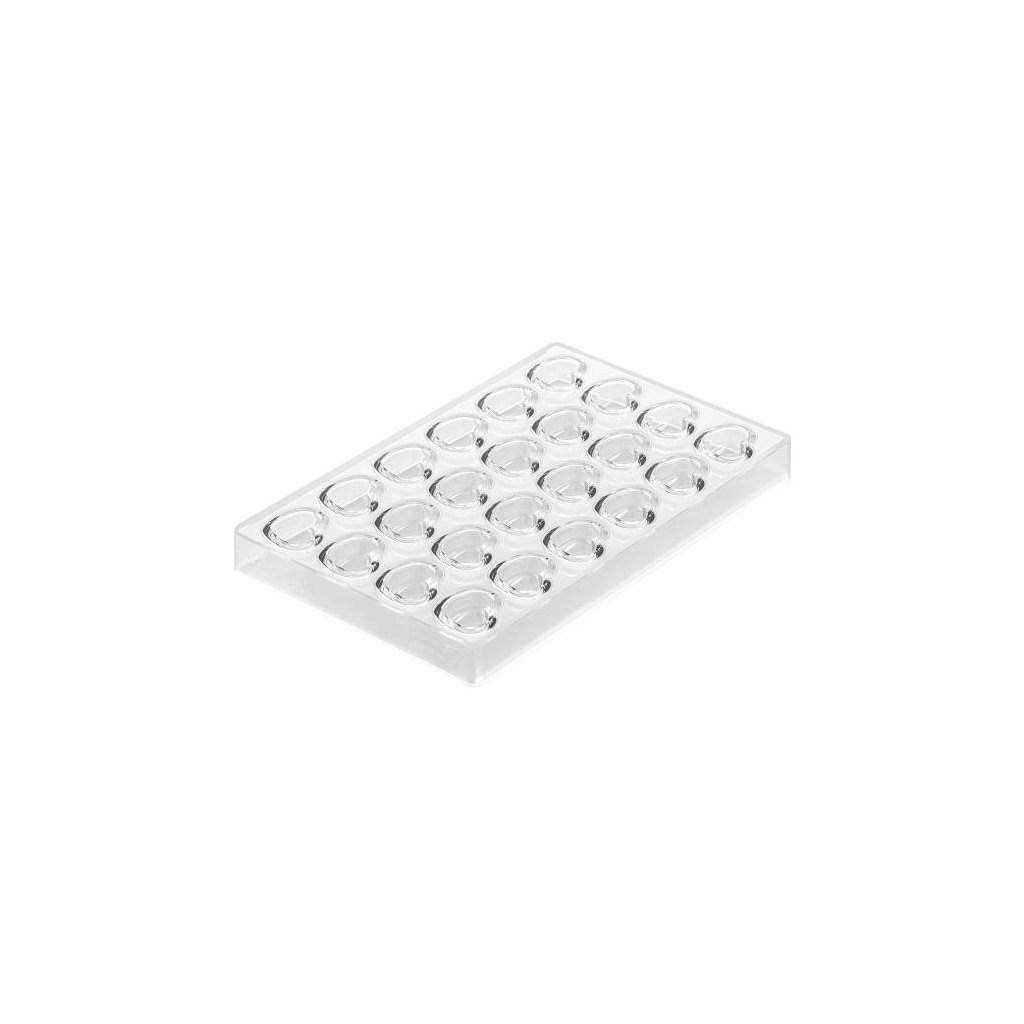 Rozměr formy: 27,5 x 17,5 x 2,5 cm Rozměr pralinky: 3,5 x 2,7 x 1,7 cm Objem pralinky: 9,4 ml Materiál: polykrabonát Výroba čokoládových bonbonů je velice jednoduchá. Při výrobě plných čokolád nalijeme do formy čokoládovou hmotu, povrch srovnáme cukrářskou kartou a necháme ztuhnout. Pokud chceme vyrábět plněné bonbony, musíme nejdříve vyrobit tzv. skořápku, to představuje nanesení čokolády na boky tvarovné formy, dáme do mrazáku podchladit a pokud je vrstva tenčí, naneseme vrstvu druhou. Do vytvořené skořepiny vkládáme požadovanou náplň - marcipán, alkoholové náplně, oříškové nebo karamelové. Záleží jen na naší fantazii a chuti. Při plnění skořepiny nezapomeneme na ponechání prostoru na zavíčkování bonbonu – tj. zalití náplně další vrstvičkou čokolády. Formu opět vkládáme do chladu a po vytuhnutí vyklepneme.| Kategorie: | Formy na čokoládu |