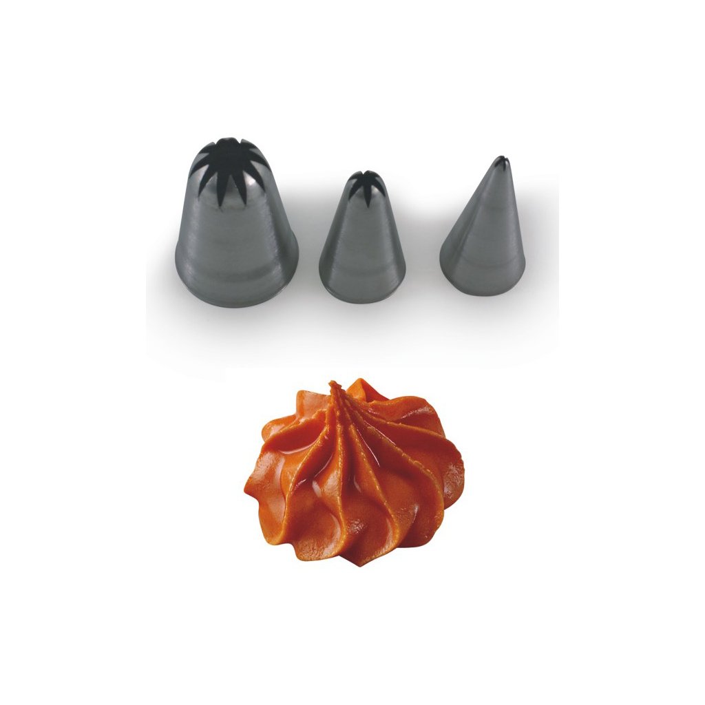 Cukrářská trezírovací špička z pevné nerezové oceli. Je vhodná jak do klasických trezírovacích sáčků, tak i do jednorázových.
