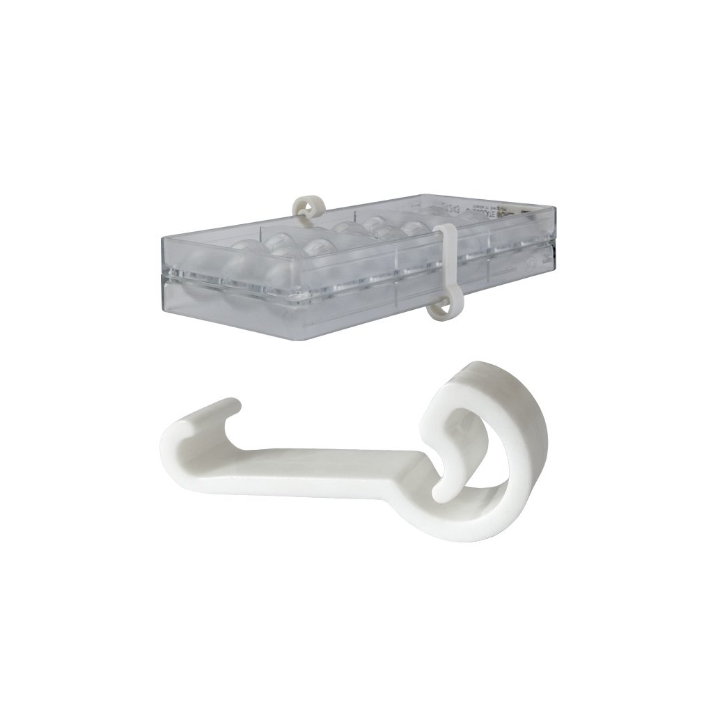 Plykarbonátová spona určená ke spojování všech párovacích forem na pralinky Chocolate World výšky 24mm. K optimálnímu uchycení je nutné použít alespoň 2 spony.