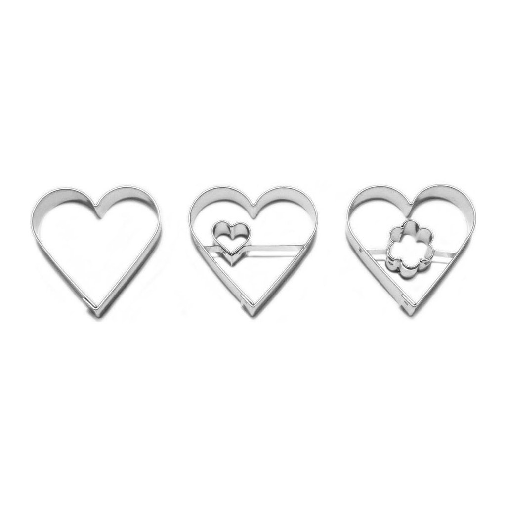 Sada tří vykrajovátek s různými středy ve tvaru srdce.Doplňkové parametry