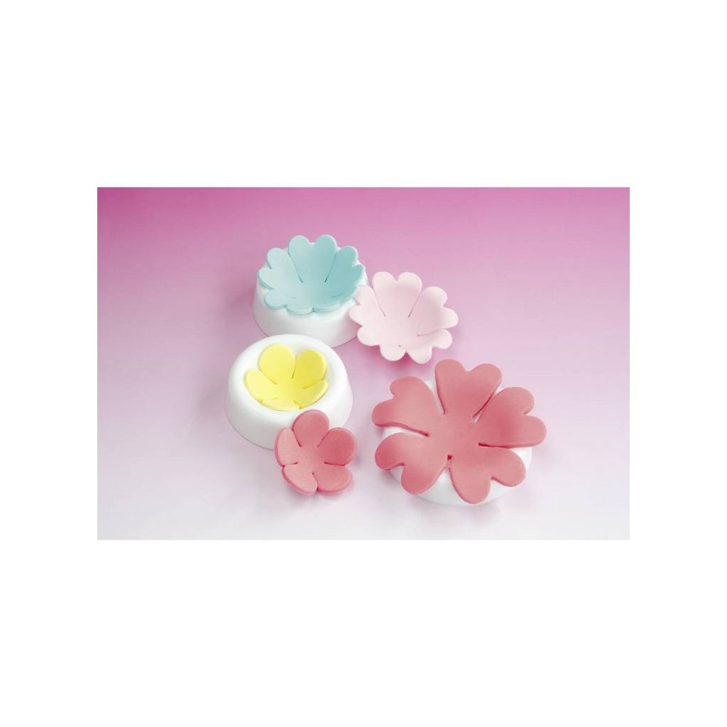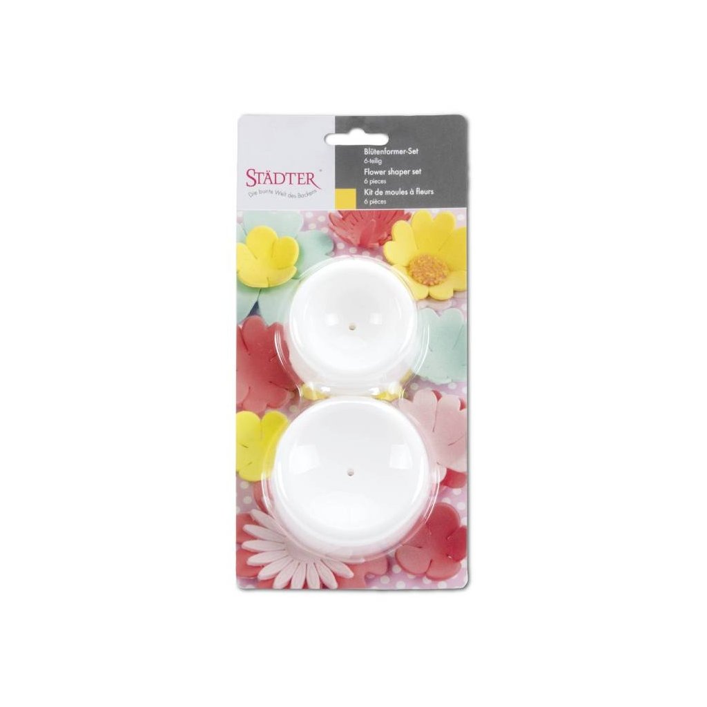 Balení obsahuje 6 ks kalíšků. Malý otvor ve dně kalíšku slouží k prostrčení aranžovacího drátku. Vykrojenou květinu či její lístky vložíme do formovače a necháme v něm vytvrdnout. Rozměry: průměr 6,5 cm a 7,5 cm Materiál: plast| Kategorie: | Cukrářské potřeby |