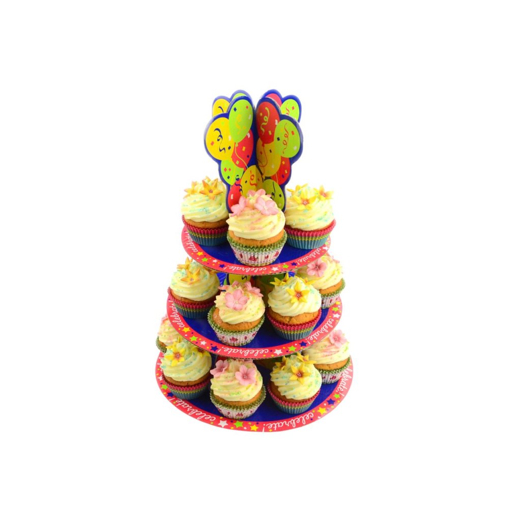 Stabilní stojánek na košíčky vyrobený z kartonu. Perfektně se hodí pro prezentaci 12-18 cupcaků nebo dortů a pečiva.