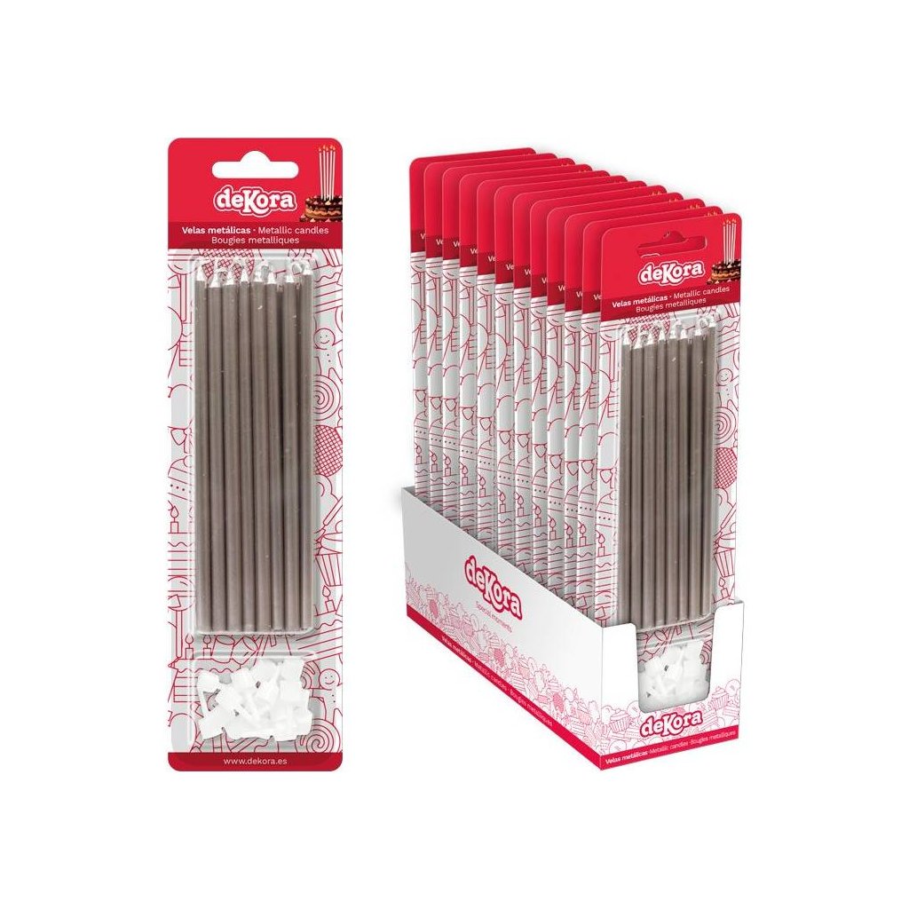 Stříbrné dortové svíčky se zápichem 13cm 16ks - Dekora | Cukrářské potřeby