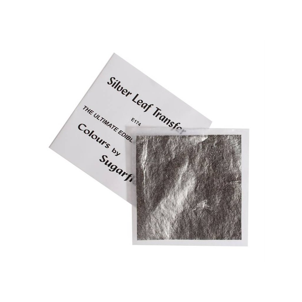 Sugarflair Transfer plát stříbrný ( 8 x 8 cm ) - Cukrářský, dekorační výrobek | Skvělé pro Váš domácí dort