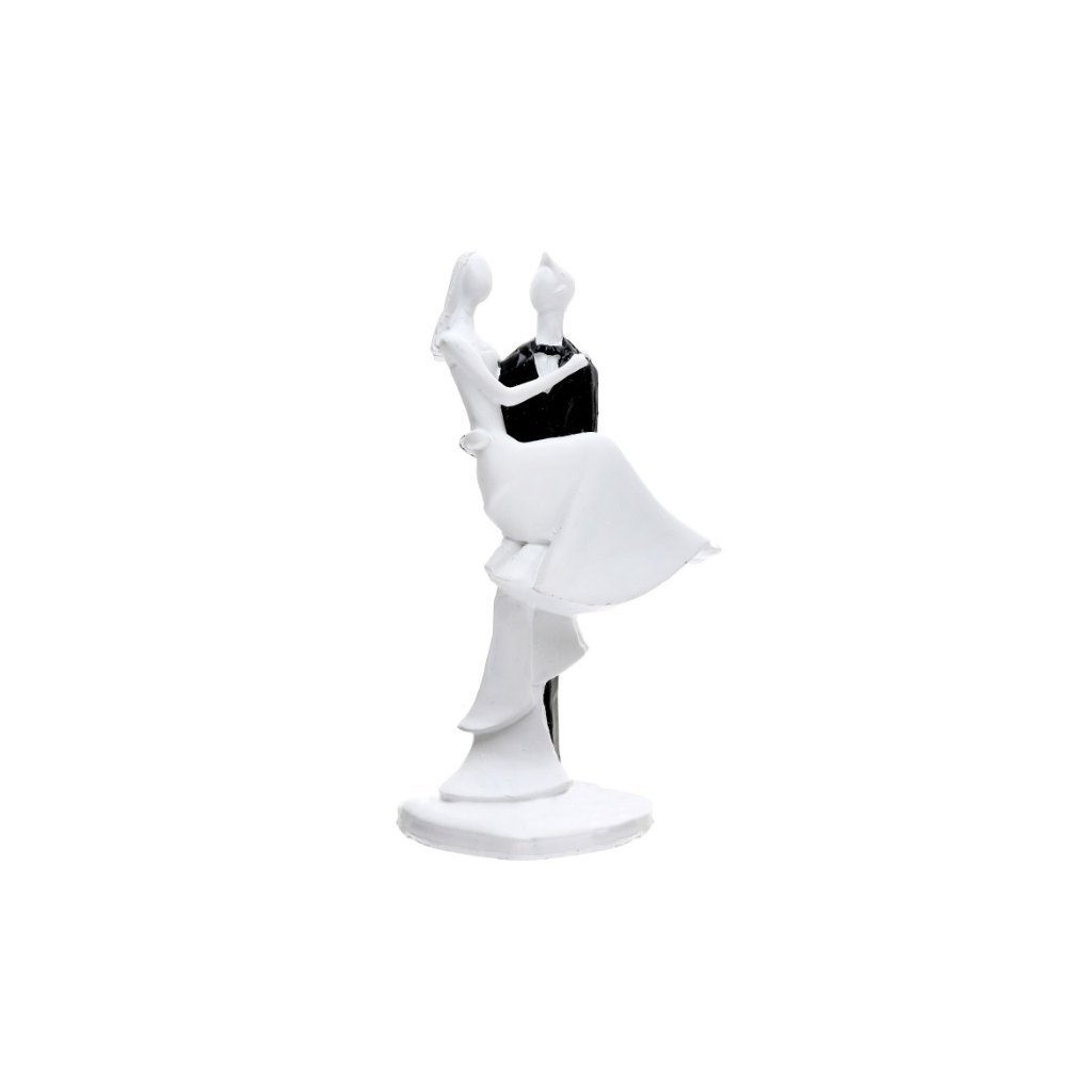 Tato elegantní svatební figurka znázorňuje symboliku lásky a oddanosti – ženicha nesoucího svou nevěstu v náručí. Minimalistické provedení v bílé a černé barvě je ideální pro moderní i klasicky laděné svatby. Hodí se na vrchol svatebního dortu, ale také jako dekorace na slavnostní stůl, candy bar nebo do vzpomínkové vitríny. Figurka je vyrobena z lehkého a odolného plastu, snadno se umisťuje a dobře drží stabilitu. Díky decentnímu designu se hodí ke každé barevné výzdobě. Technické parametry:Materiál: plastRozměry: 8,5 × 14 cmBarva: černobíláBalení: 1 ks| Kategorie: | Párty, oslavy a svatby |
