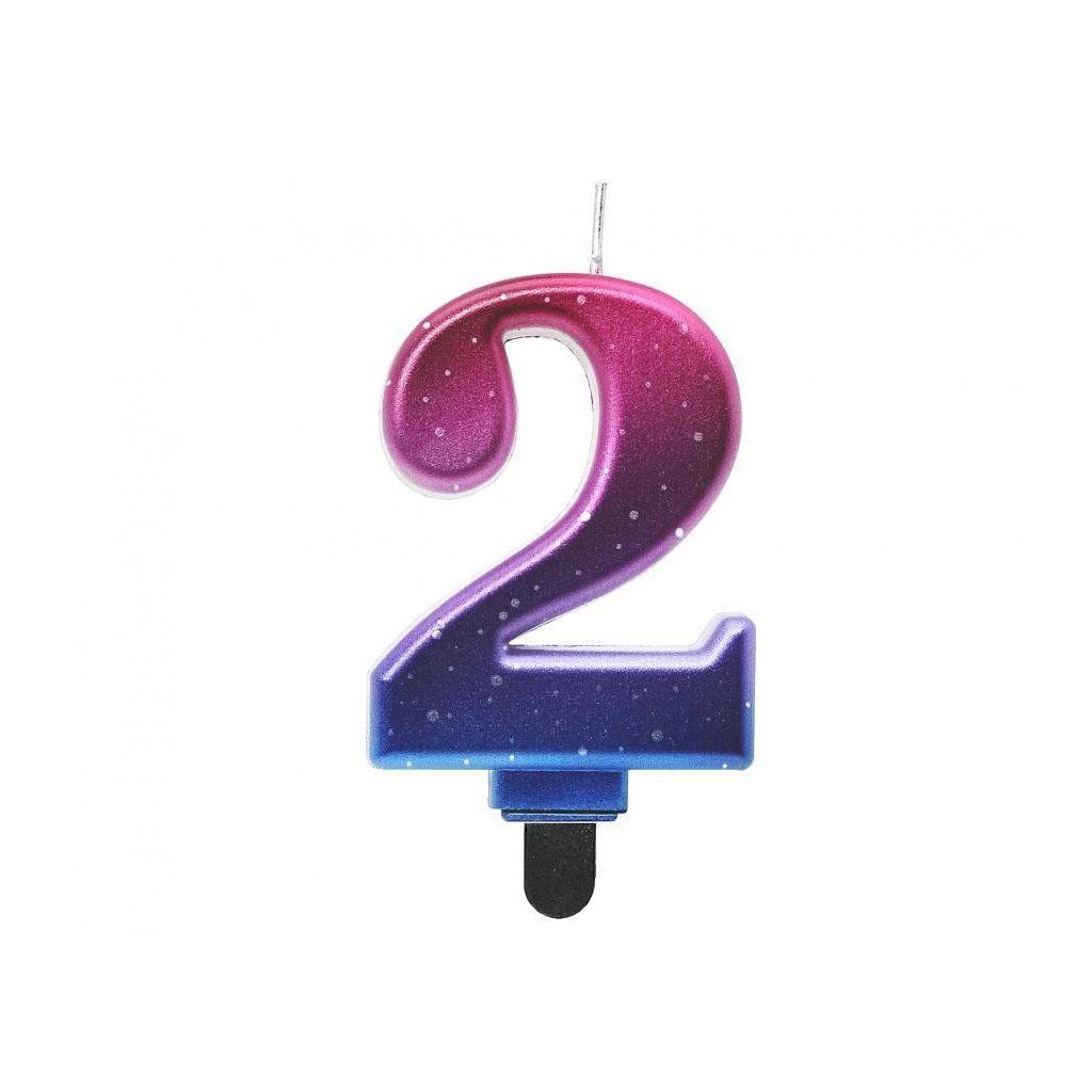 Godan svíčka růžovo-fialovo-modrá číslo 2 ▹