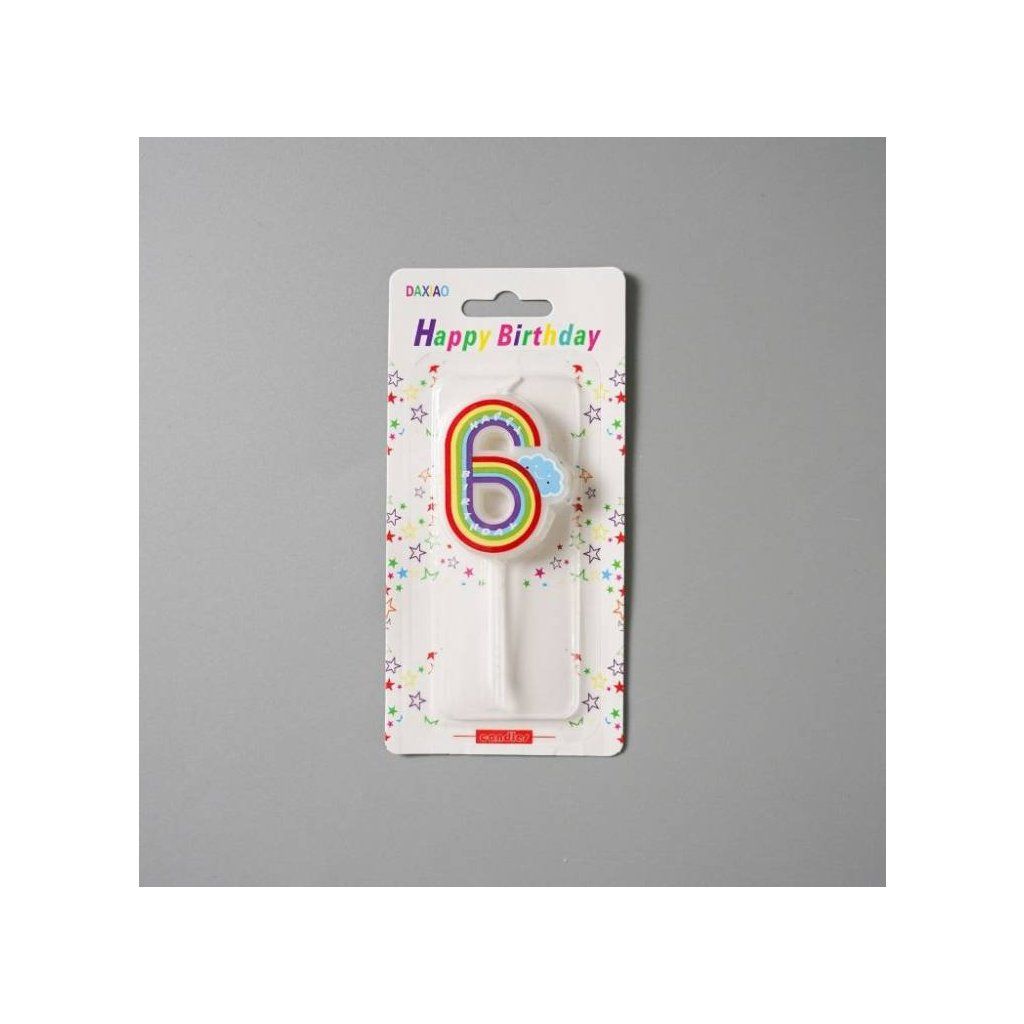 Svíčka duhová s obláčkem číslo 6 ▹