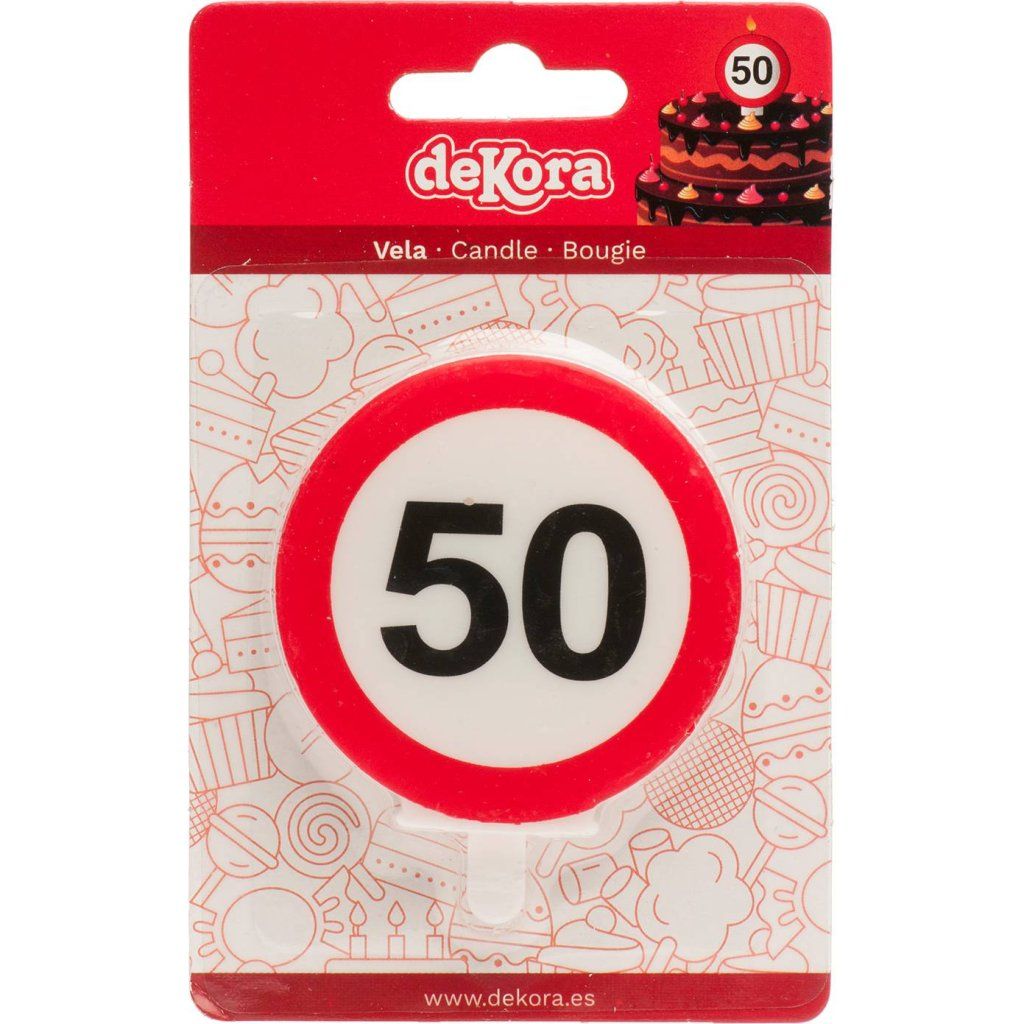 Svíčka na dort 6,3cm dopravní značka číslo 50 - Dekora | Cukrářské potřeby