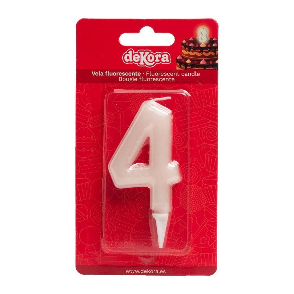 Svíčka na dort číslo 4 svítící ve tmě 6cm - Dekora | Cukrářské potřeby