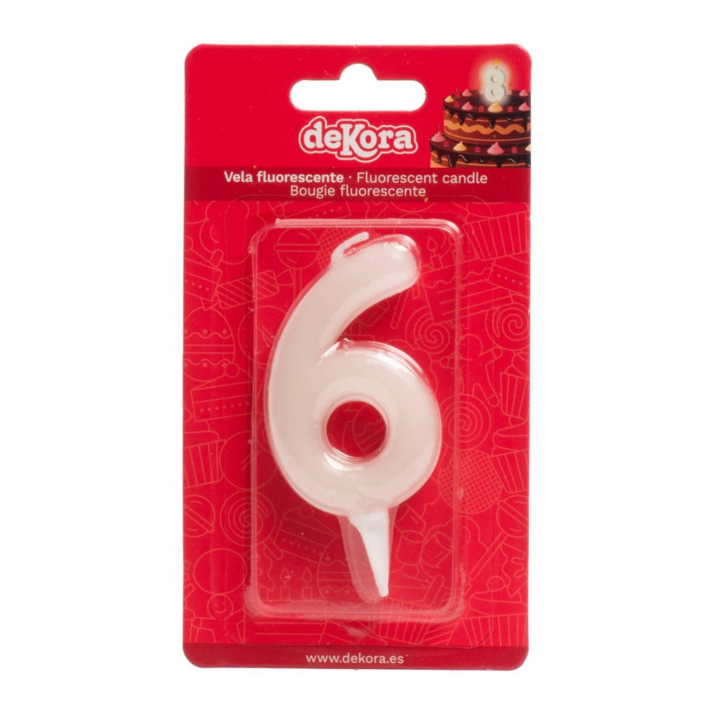 Svíčka na dort číslo 6 - svítí ve tmě. Velikost 6 cm.Doplňkové parametry