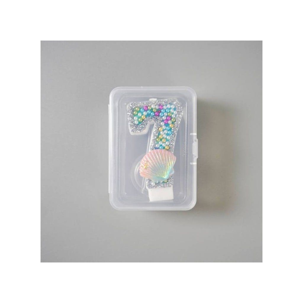 Svíčka s perlami a mušlí Oceán číslo 7 ▹