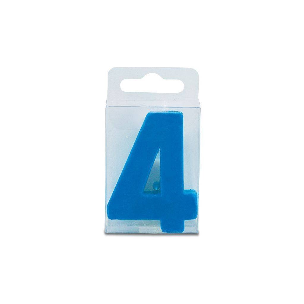 Svíčka modré barvy ve tvaru číslice 4, vysoká 4 centimetry.Doplňkové parametry