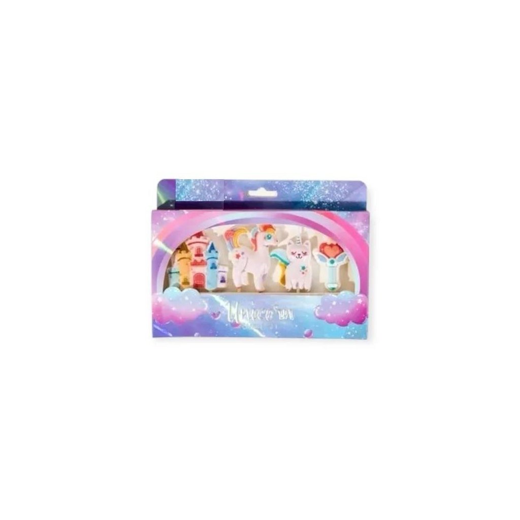 Vneste do narozeninové oslavy kouzelnou atmosféru! Tyto narozeninové svíčky s motivem jednorožců a zámku jsou ideální pro malé princezny a milovníky pohádek. Skvěle ozdobí dort, cupcakes nebo sladký bar a promění oslavu v pohádkové království plné barev a fantazie. Výška: 4,5 - 5,5 cm| Kategorie: | Dortové svíčky |