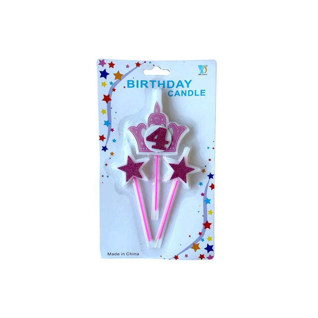 Slavnostní sada narozeninových svíček obsahuje jednu dekorativní svíčku ve tvaru koruny s číslem a dvě doplňkové hvězdičkové svíčky. Skvěle ozdobí narozeninový dort a vytvoří elegantní, pohádkovou atmosféru. Ideální pro dětské oslavy, tematické párty i jako stylový doplněk k dortům všech typů.