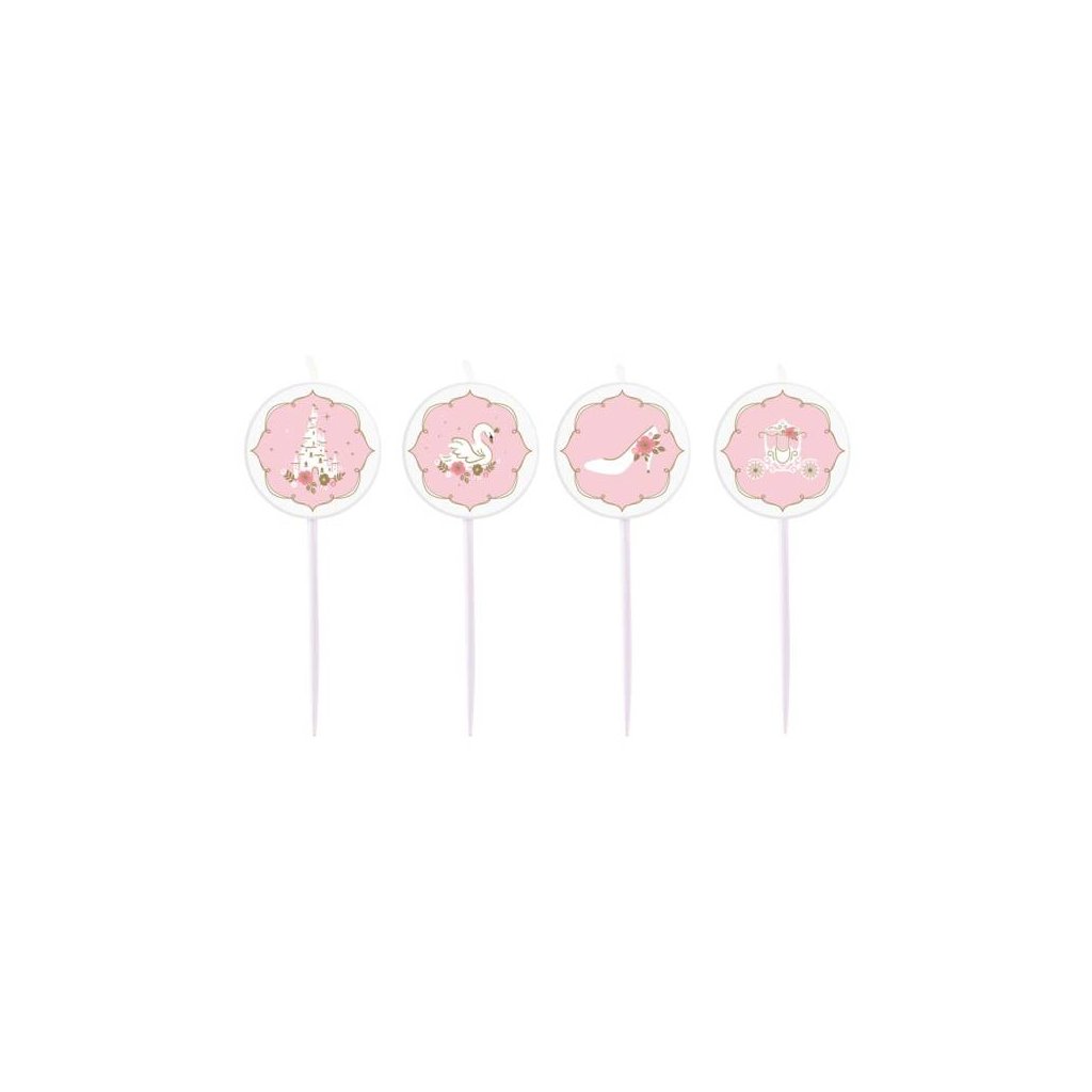 Svíčky růžové s princeznovskými motivy (4 ks) ♡