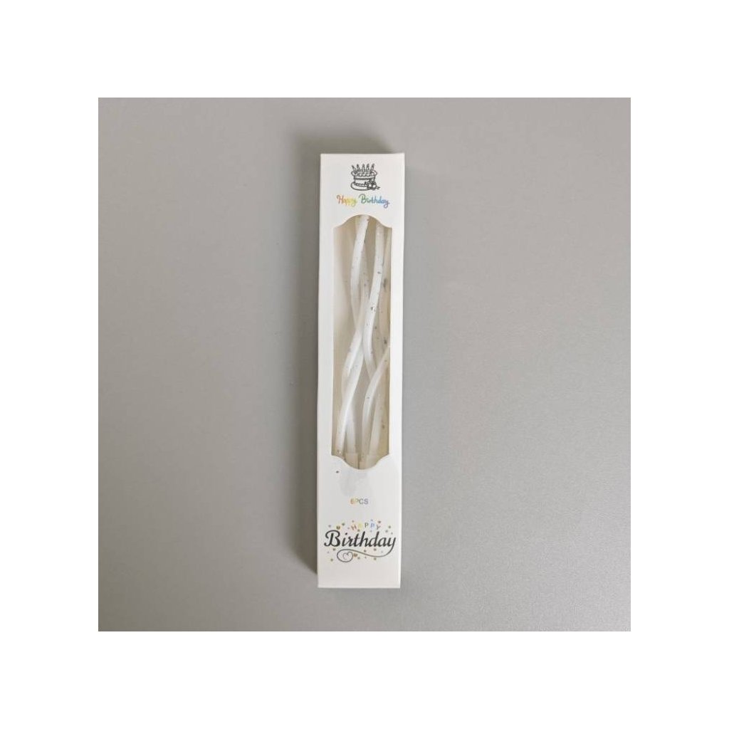 Svíčky spirálové bílé se stříbrným zdobením (6 ks) ♡
