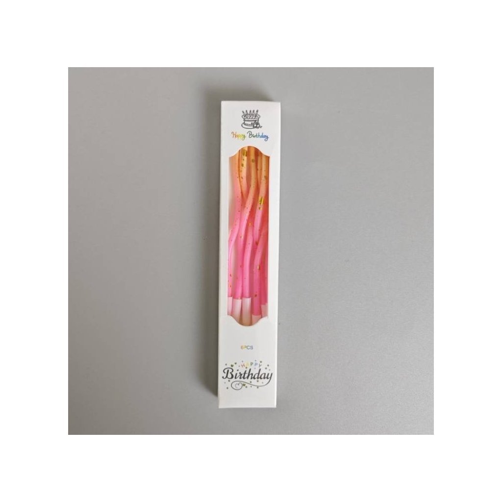 Svíčky spirálové růžovo-oranžové se zlatým zdobením (6 ks) ♡