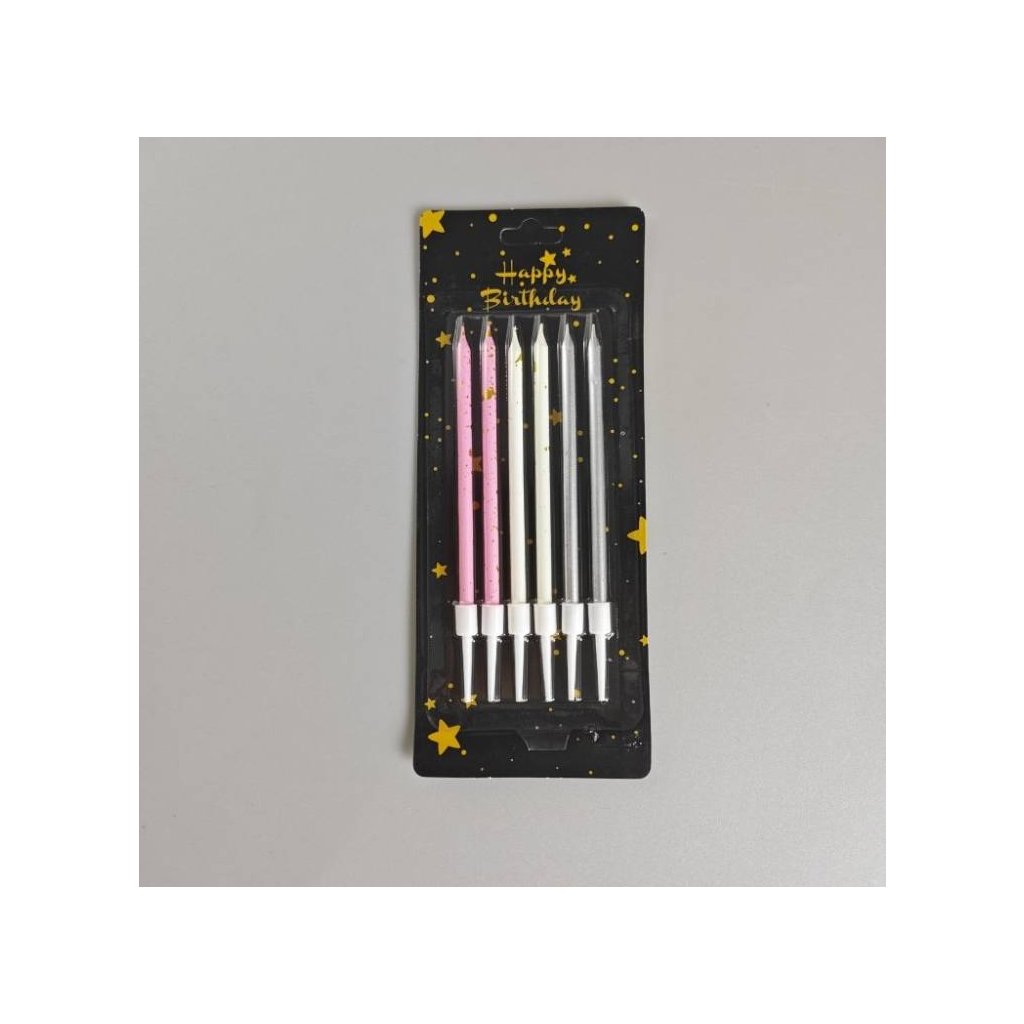 Svíčky Star růžové, bílé a stříbrné (6 ks) ♡