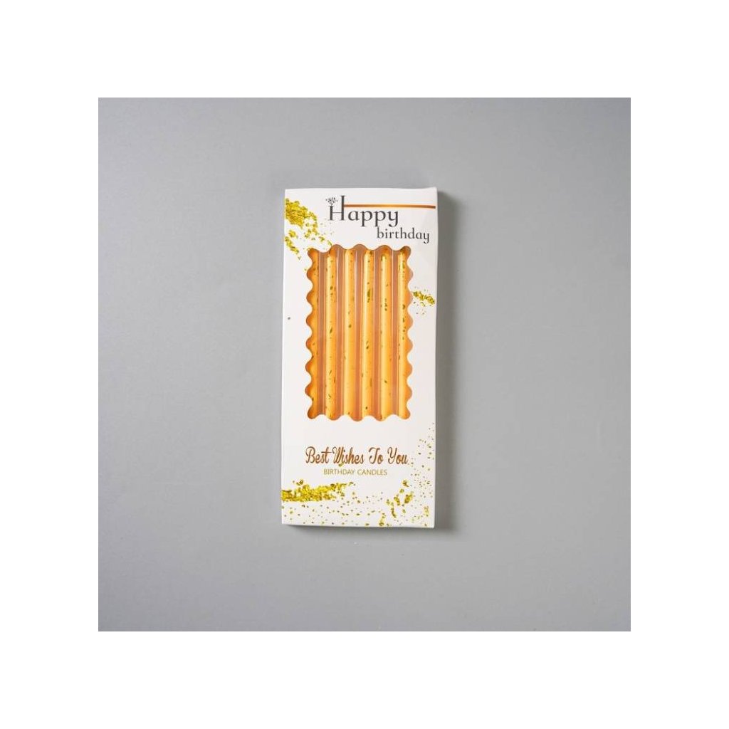 Svíčky žluté se zlatým zdobením (6 ks) ♡