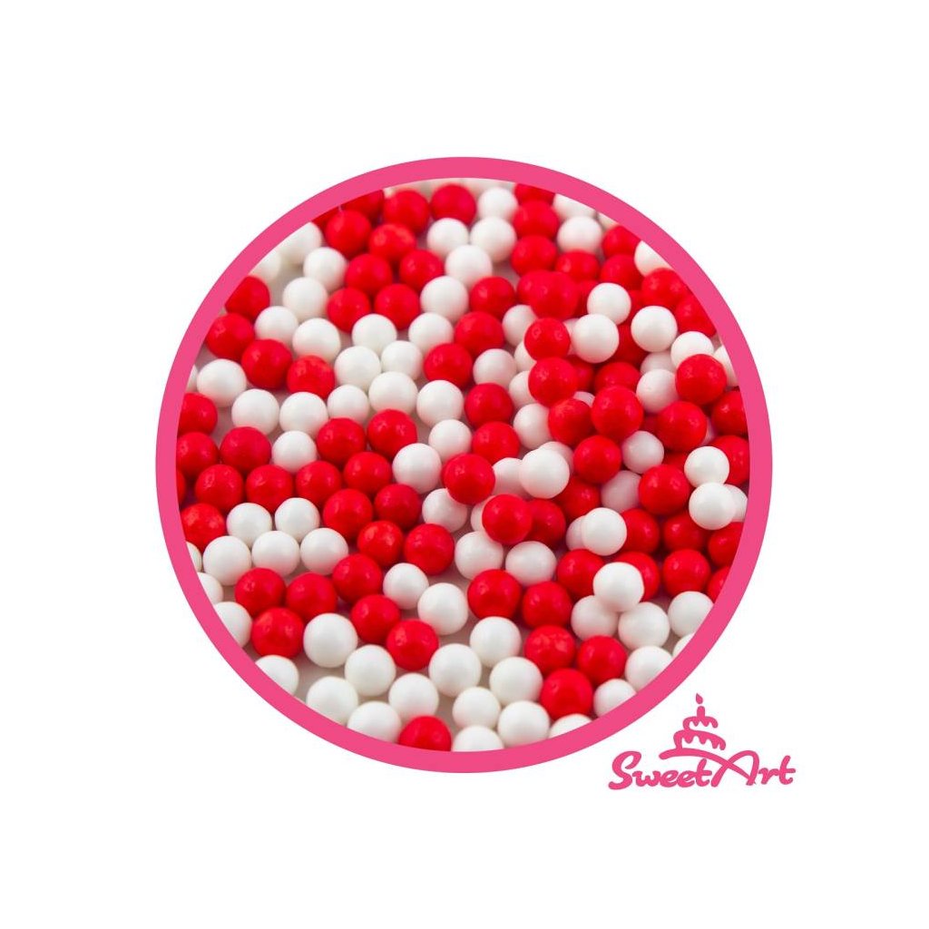 Produkt pro domácí cukráře: SweetArt cukrové perly červené a bílé 5 mm 50 g