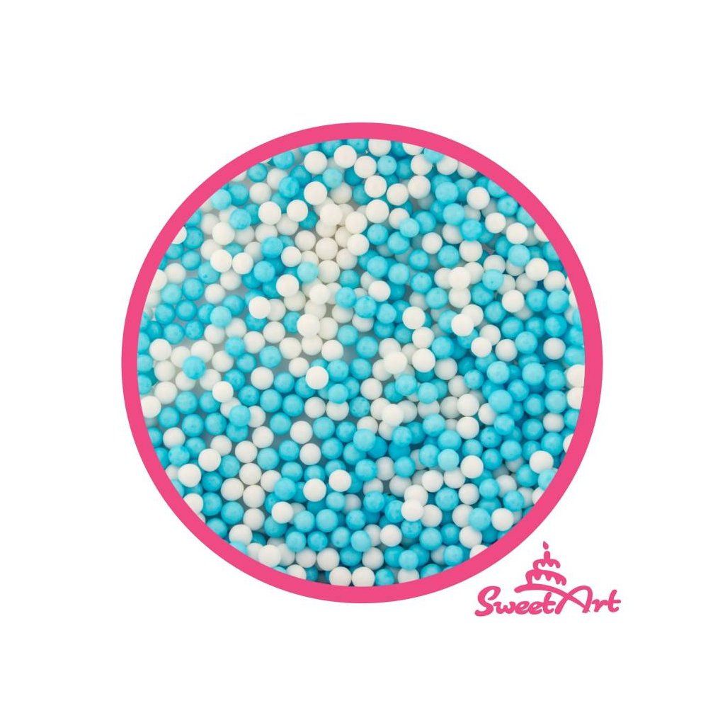 Cukrové perly SweetArt modré a bílé 5 mm (80 g) ▹