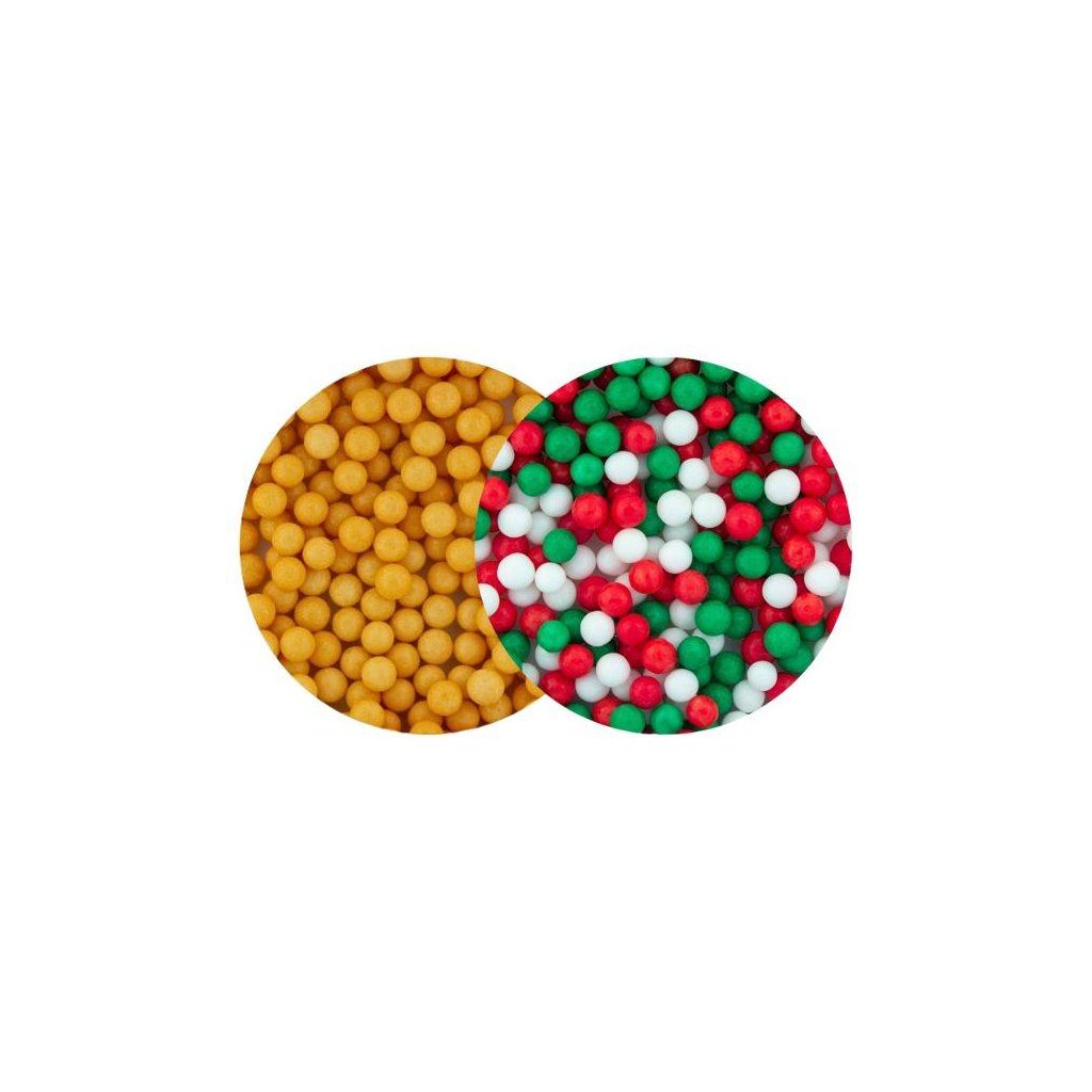 SweetArt cukrové perly zlatožluté matné a Christmas mix 5 mm (120 g) ♡
