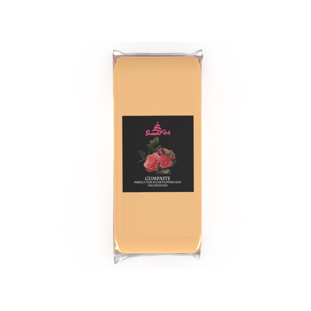 Speciální hmota, která je určena zejména k modelaci cukrových květin a výrobě složitých ozdob. Je bílá a velmi pružná. Květiny z této hmoty můžeme tvarovat buď přímo pomocí vykrajovátek a silikonových žilkovačů, nebo zvolit náročnější tvarovaní pomocí floristických drátků, pásek, ztenčovacích podložek a vykrajovátek. Je dobré mít po ruce i škrob, aby hmota předčasně nelepila například při vykrajování a žilkování. Hotové části květin necháme zapíchnuté v polystyrenu vytvrdnout a potom je pomocí floristické pásky svazujeme do potřebných tvarů. Hmotu lze barvit běžnými gelovými barvami.Složení, co obsahuje produkt - SweetArt gum pasta vanilková Peach 1 kg pro cukrářské účely: