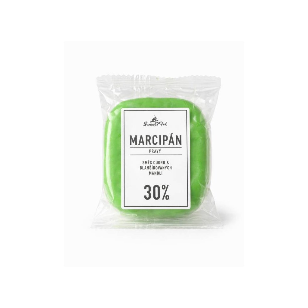 Složení, co obsahuje produkt - SweetArt Pravý marcipán zelený 30% mandlí 150 g pro cukrářské účely:
