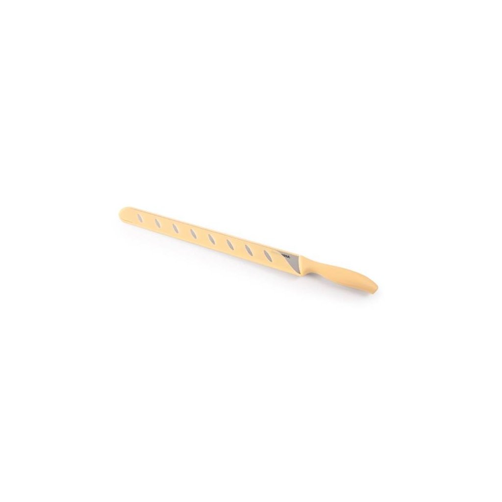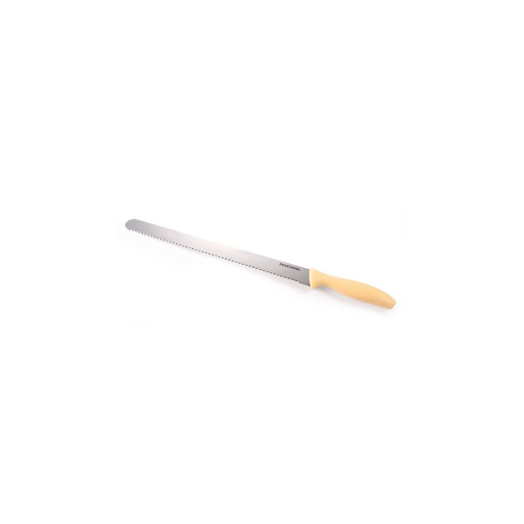 Extra dlouhý nůž na dorty s tenkou čepelí a speciálně tvarovaným ostřím. V čem nůž na dorty DELÍCIA vyniká? Je vynikající pro krájení dortových korpusů na pláty, porcování dortů na klínky a roztírání tekutých i krémových polev. Díky 30 cm dlouhé tenké čepeli se speciálně tvarovaným ostřím je krájení dortových korpusů, hotových dortů i roztírání polev snadné a rychlé. Jaké má nůž na dorty DELÍCIA další výhody? je dodáván s ochranným krytem čepele. Materiál: Prvotřídní nerezavějící ocel a odolný plast. Údržba: Vhodné do myčky. Délka: 43 cm Délka čepele: 30 cm Šířka: 3,5 cm| Kategorie: | Cukrářské nože a palety |