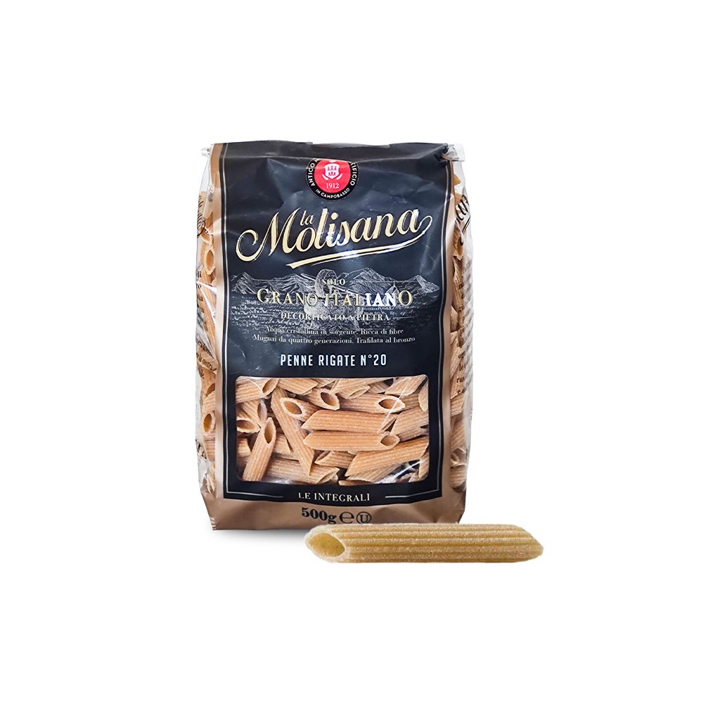 Tradiční italské semolinové sušené těstoviny vyrobené z kvalitní tvrdé pšenice. Jsou vyrobeny z kvalitní celozrnné mouky, která zachovává všechny přirozené živiny a vlákninu z italské pšenice. Mouka tak zachovává všechny části zrna, včetně otrub, endospermu a klíčku, což zajišťuje vyšší obsah vlákniny, vitamínů a minerálů. Tyto těstoviny jsou ideální volbou pro ty, kteří preferují zdravější stravování a chtějí si vychutnat plnou chuť a texturu celozrnné mouky. Vyrábějí se na bronzové matrici. Při vaření si zachovávají tvar a jsou lehce stravitelné.