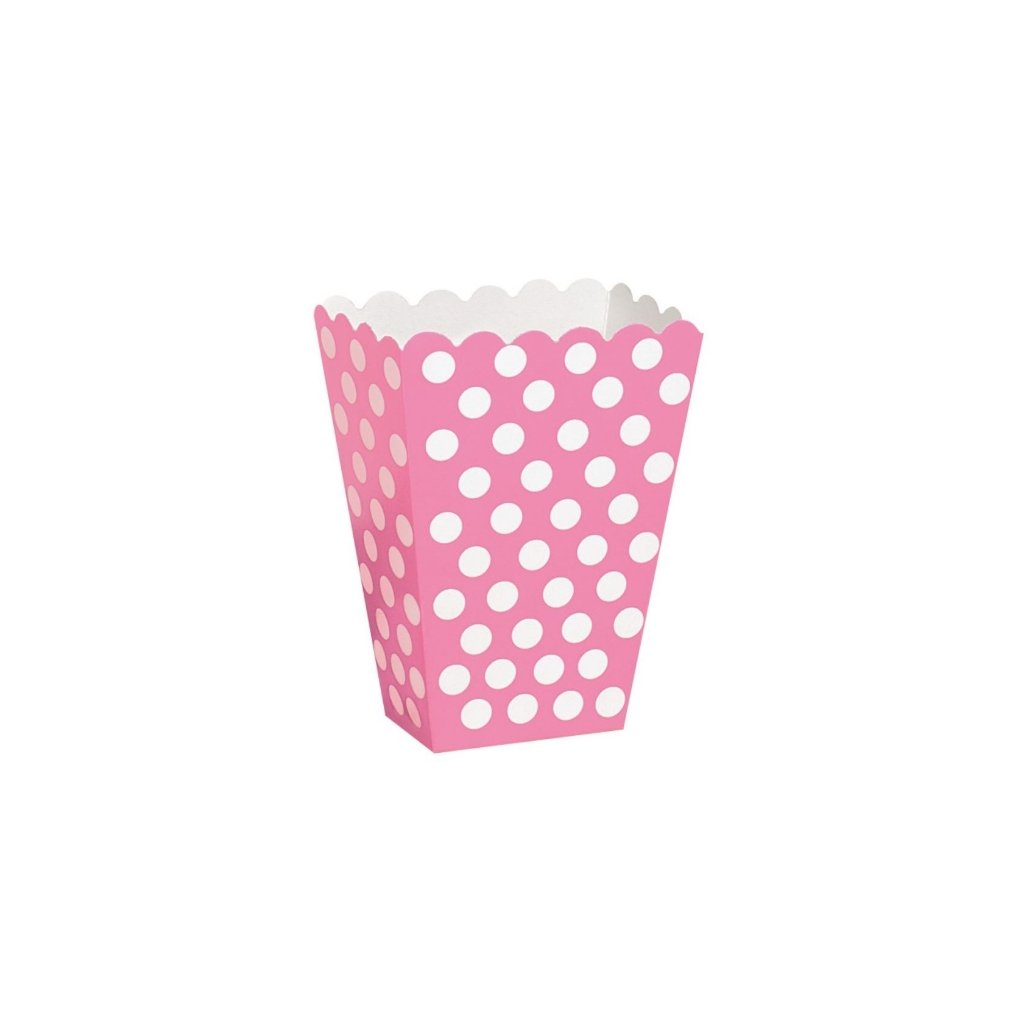 Tmavě růžové krabičky na popcorn s puntíky, 8 ks /BP