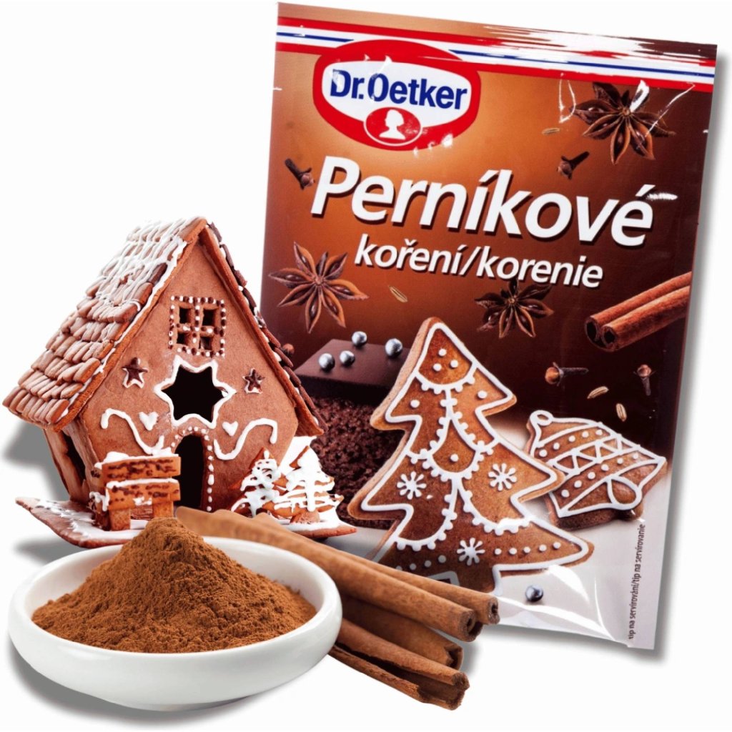 Voňavá směs prvotřídního koření (skořice, hřebíček, koriandr, fenykl, anýz, nové koření, muškátový květ, muškátový ořech, badyán) pro přípravu vánočního pečiva, perníčků, medovníků, perníku i jako koření do povidel a jiných receptů.Perníčky: V míse utřeme 2 vejce, 140 g moučkového cukru a 100 g změklého másla. Přidáme 2 polévkové lžíce tekutého medu a 3-4 kávové lžičky Perníkového koření Dr. Oetker a krátce zamícháme. Poté přidáme 400 g hladké mouky, 1 kávovou lžičku Jedlé sody Dr. Oetker a ručně vypracujeme hladké těsto. Necháme asi 30 minut v chladničce odpočinout. Na pomoučené pracovní ploše těsto vyválíme na silnější plát. Formičkami vykrajujeme různé tvary, které dáváme na plech vyložený papírem na pečení v dostatečné vzdálenosti od sebe. Pečeme asi 8 minut v předehřáté troubě při 180 °C. Perníčky po vychladnutí ozdobíme.
