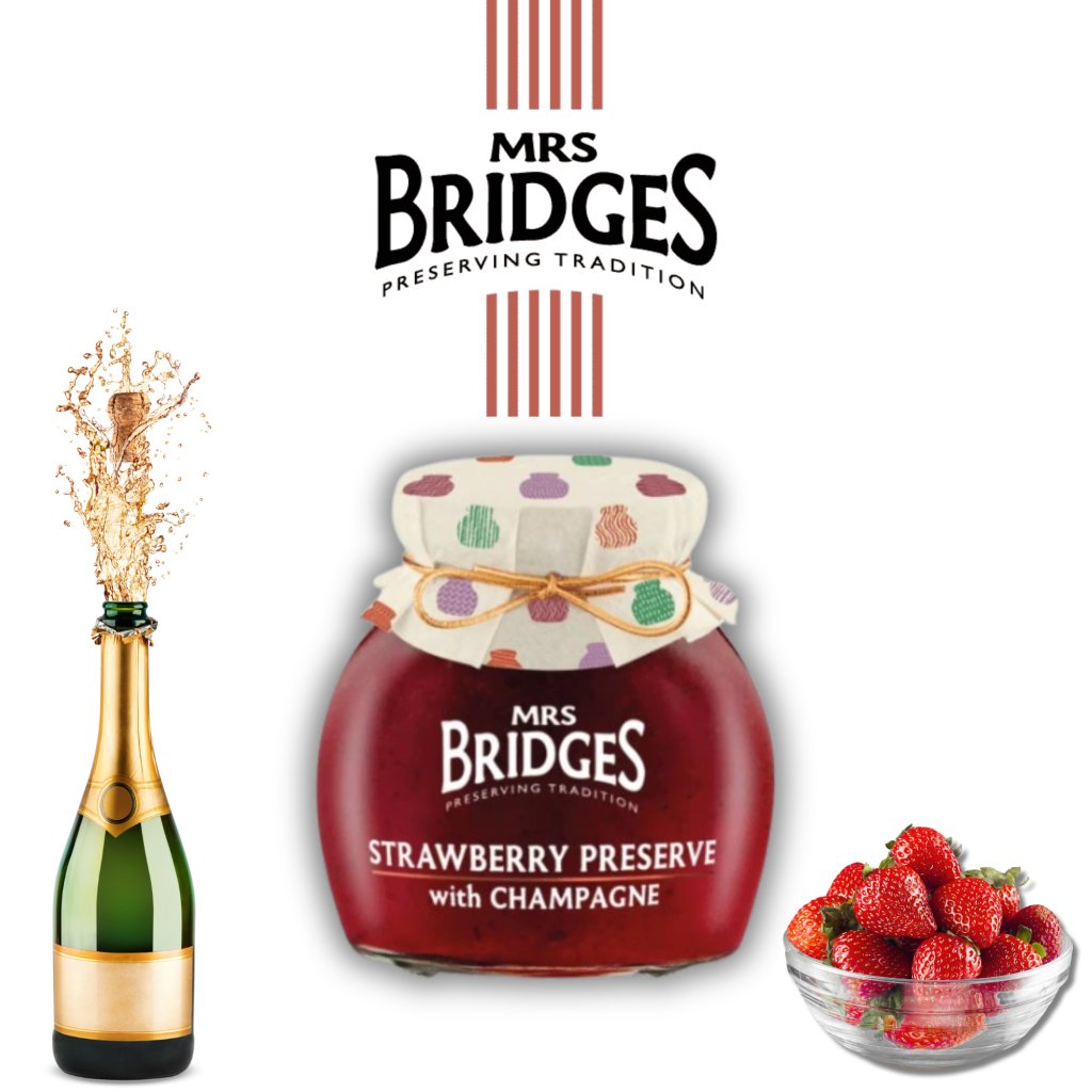 Objevte lahodné spojení tradice a kvality s Mrs. Bridges Tradiční skotskou jahodovou marmeládou s šampaňským. Tento výjimečný produkt přináší do vašich domovů kousek britského dědictví, které je uzavřeno ve sklenici plné chutí a elegance.