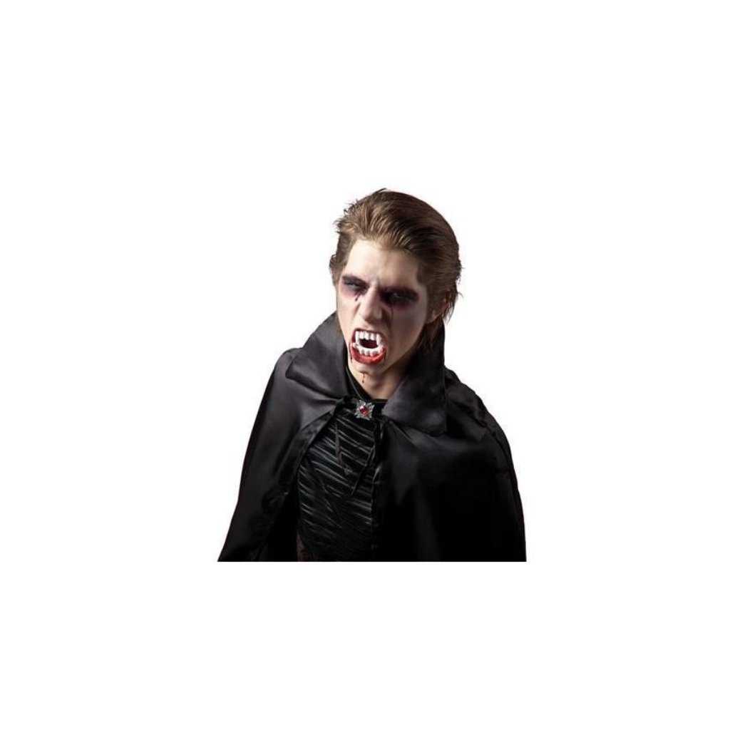 Upíří zuby z umělé hmoty. Halloweenská párty se blíží a vy stále nevíte za co se převléknete? S touto sadou je váš problém vyřešen,teď už jen sladit oděv a je hotovo.Doplňkové parametry