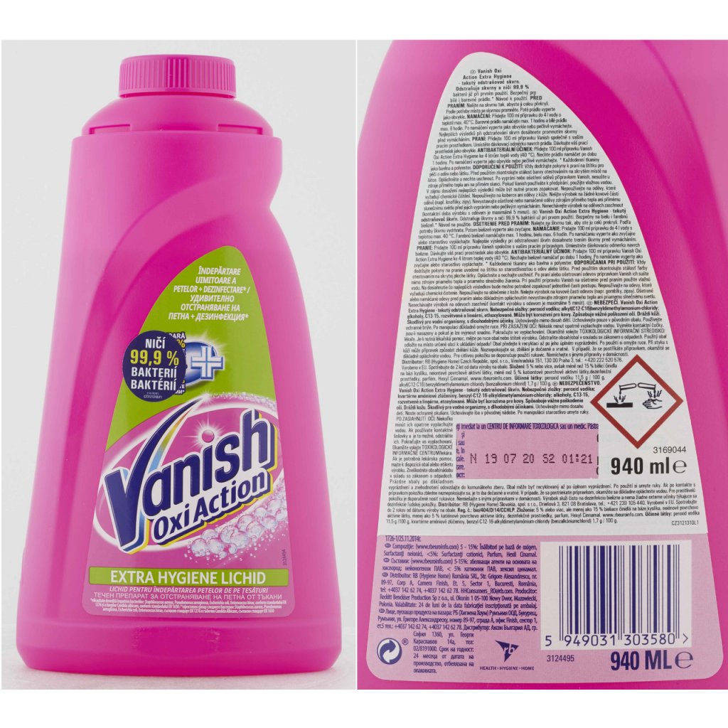 Vanish Oxi Action Extra Hygiene Tekutý odstraňovač skvrn 940 ml