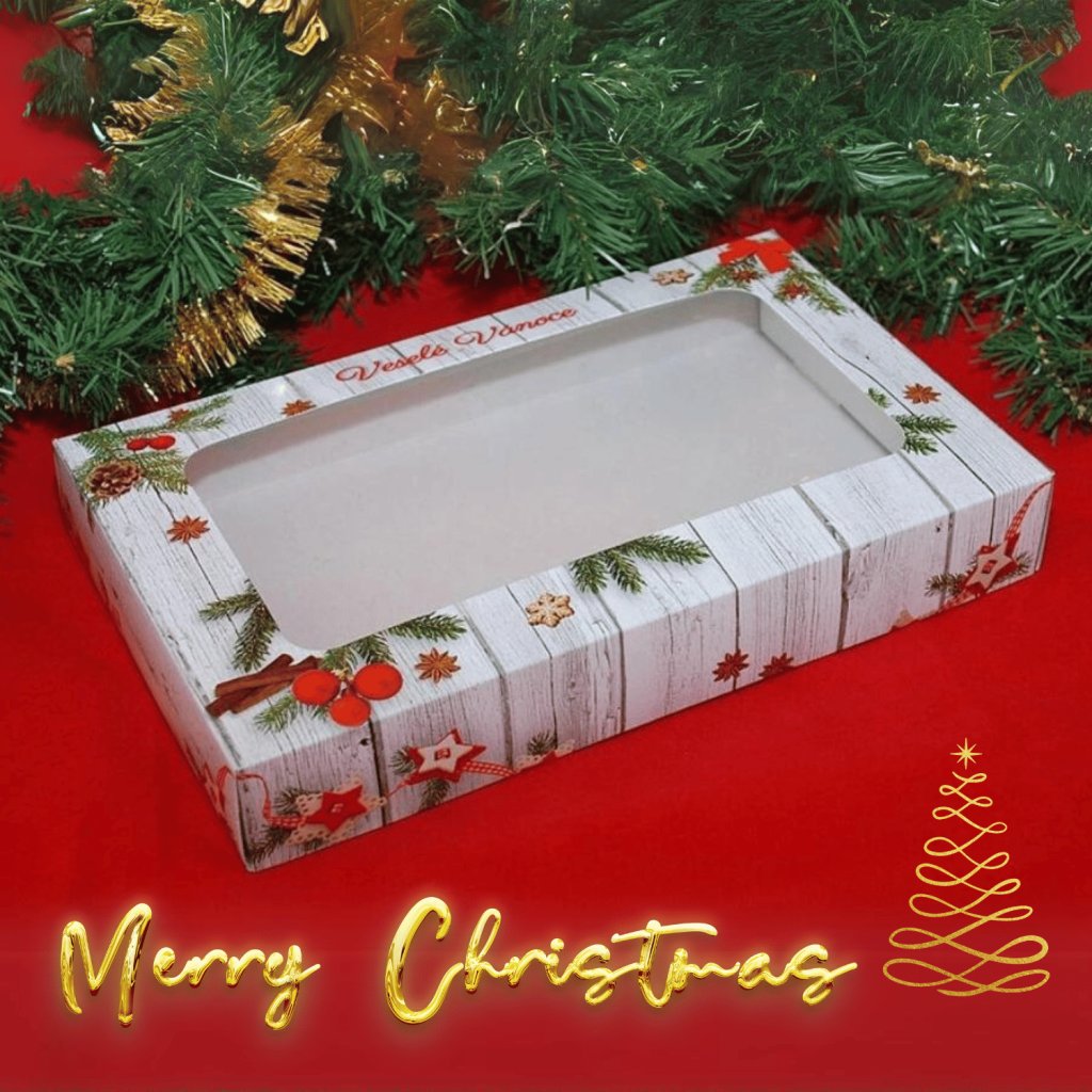 5 ks - Vánoční krabice na cukroví 25 x 15 x 3,7 cm na 500g s potiskem balíček vánočních krabiček
