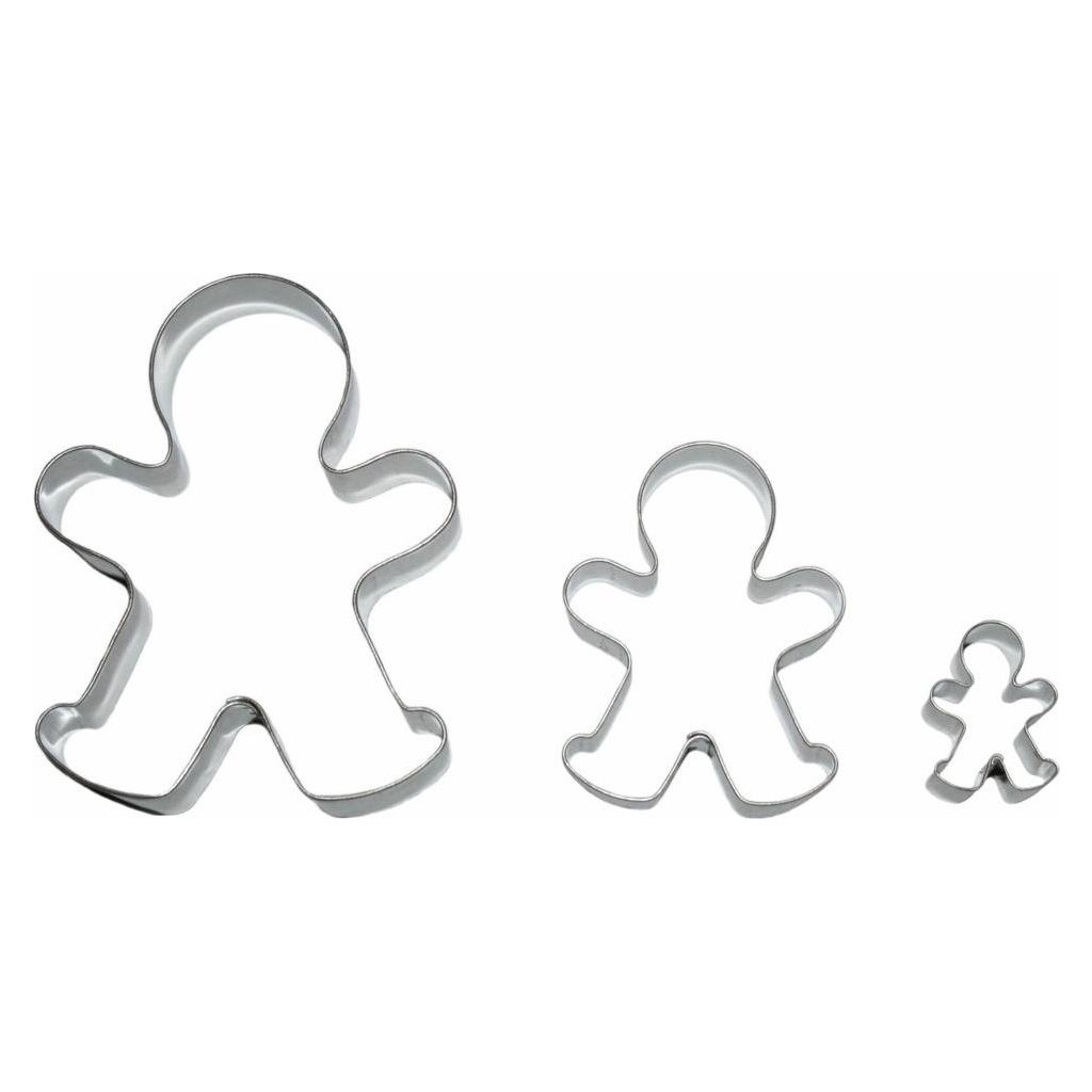 Sada tří vykrajovátek ve tvaru panáčků z pocínovaného plechu.Doplňkové parametry