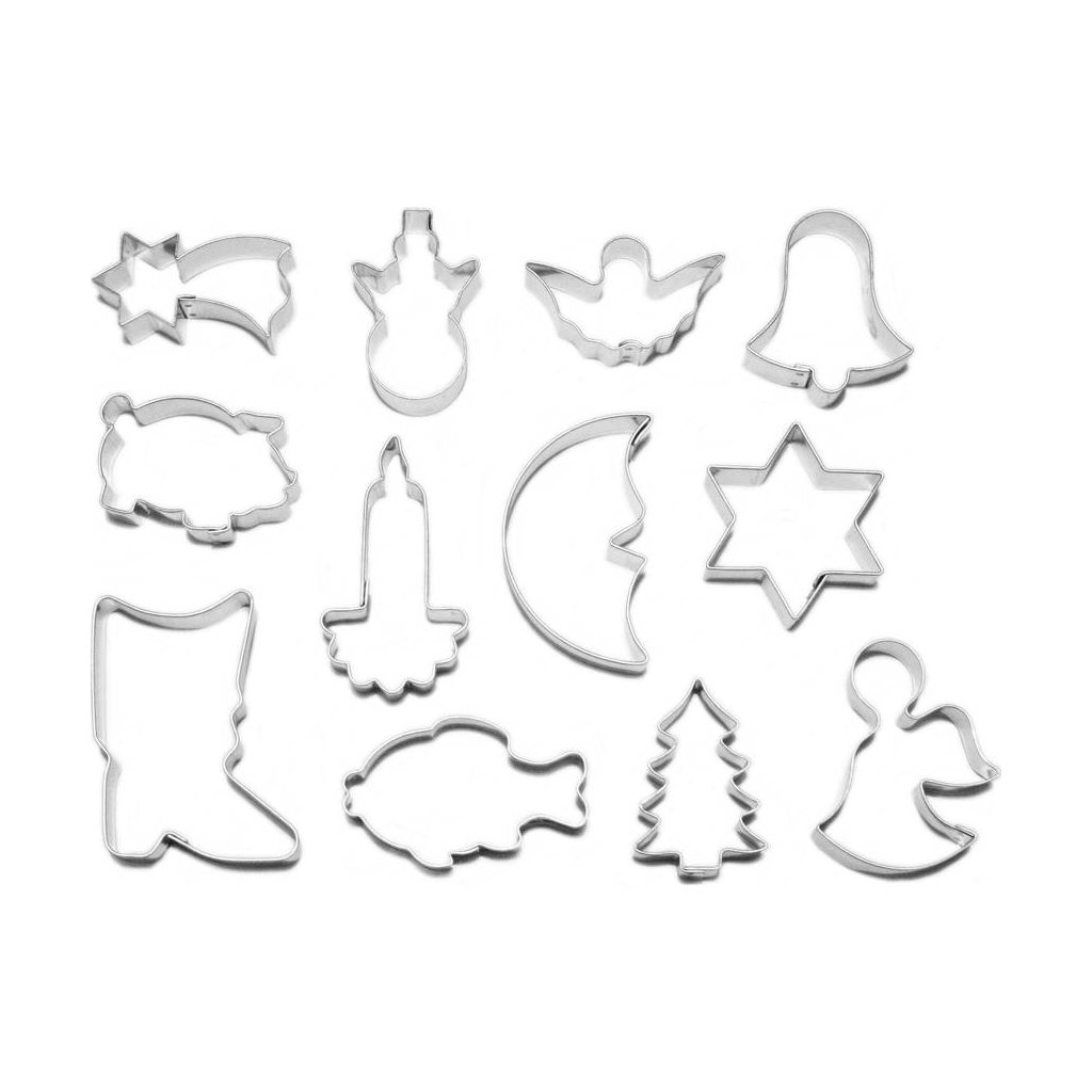 Sada dvanácti vykrajovátek s tematickým zaměřením na vánoční svátky je zhotovena z pocínovaného plechu a nabízí různé veselé motivy, mezi nimiž nechybí ani kometa, sněhulák, anděl na obláčku i jen tak poletující, ryba, stromek, škorně, hvěz.Doplňkové parametry
