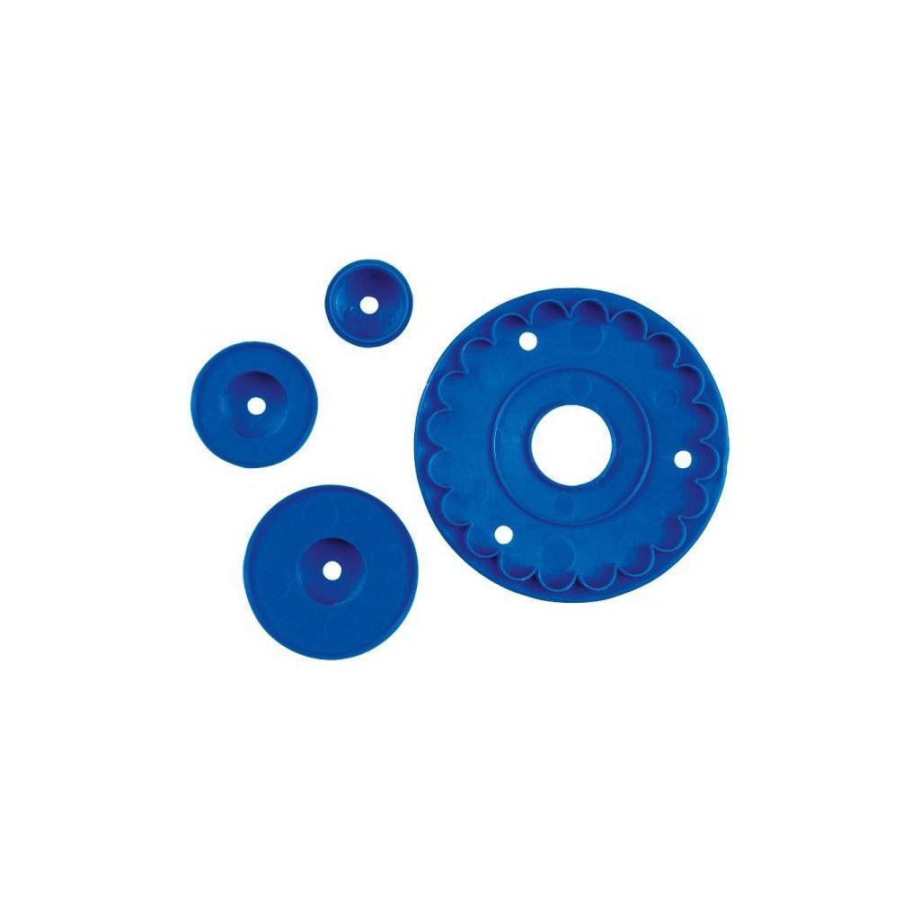Sada obsahuje 1 základní vykrajovátko s vlnitým okrajem a 3 vykrajovátka na středy, které umožňují vytvořit volánky s různou šířkou.